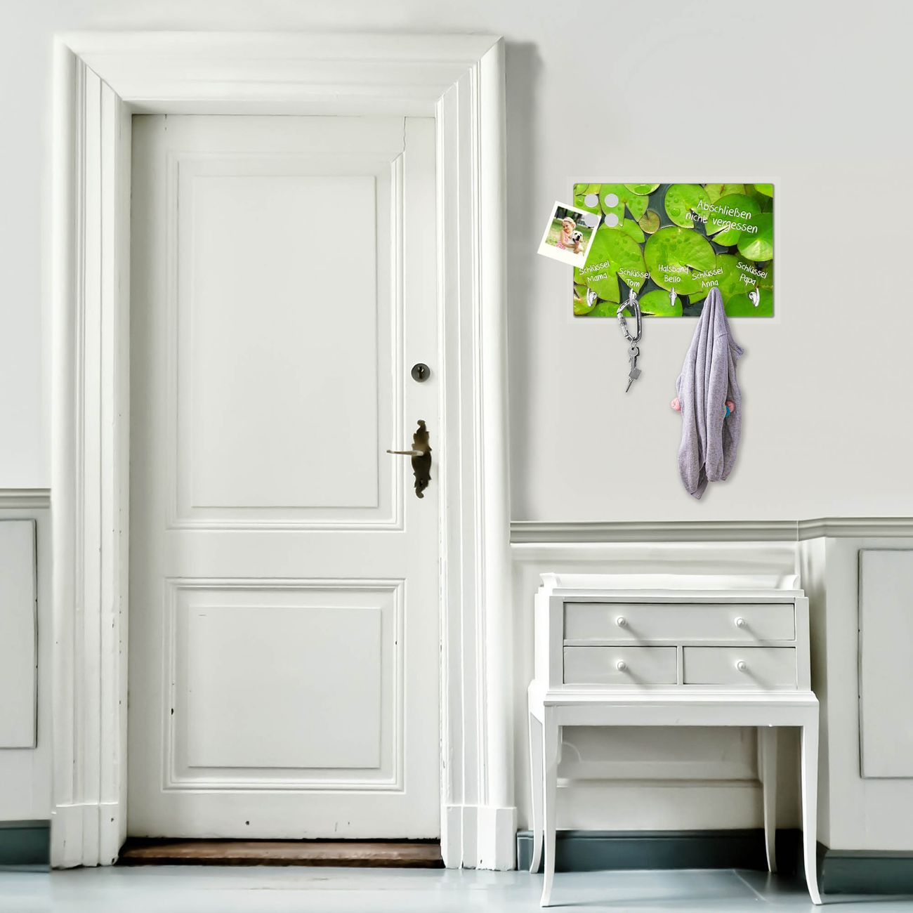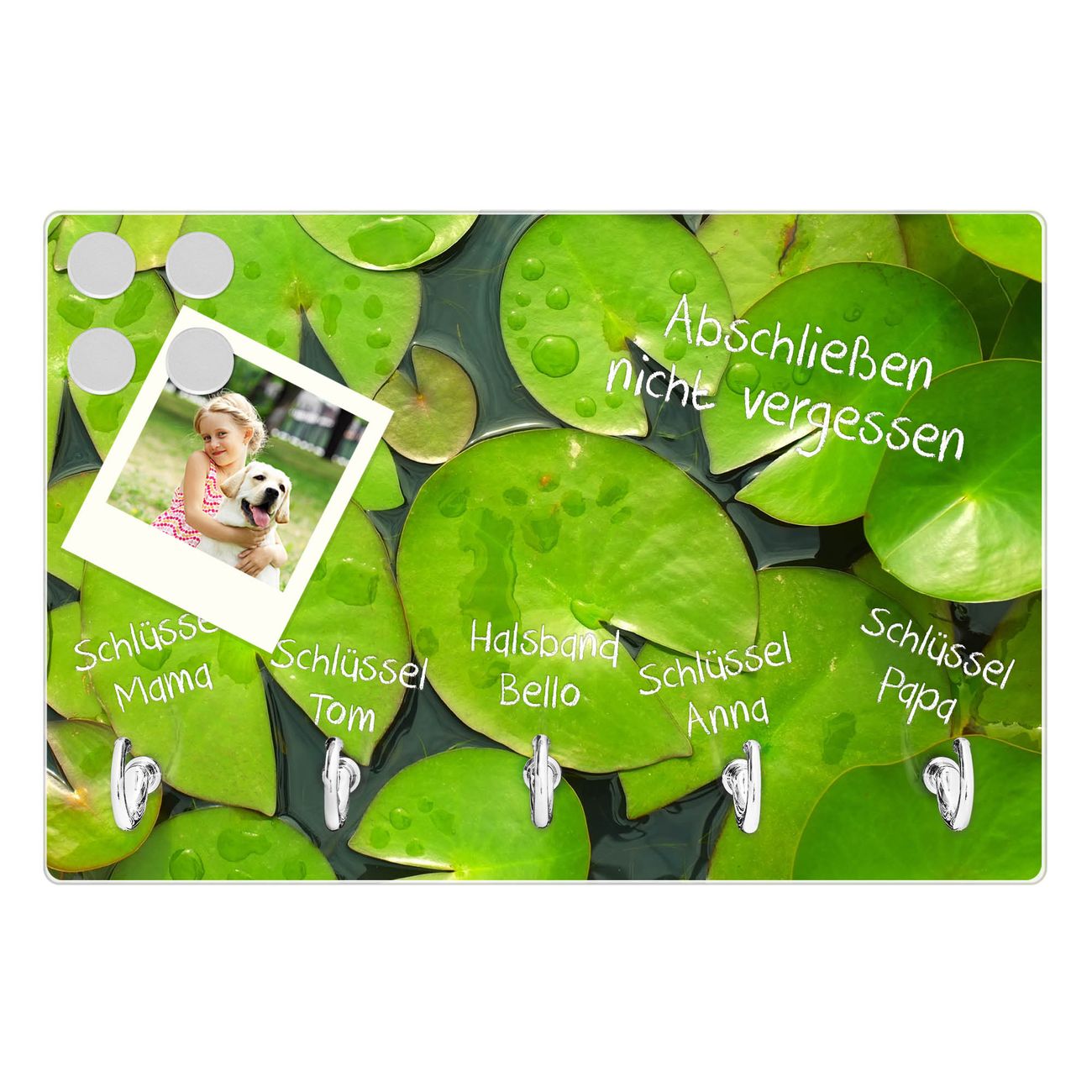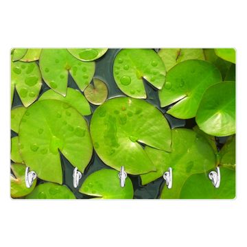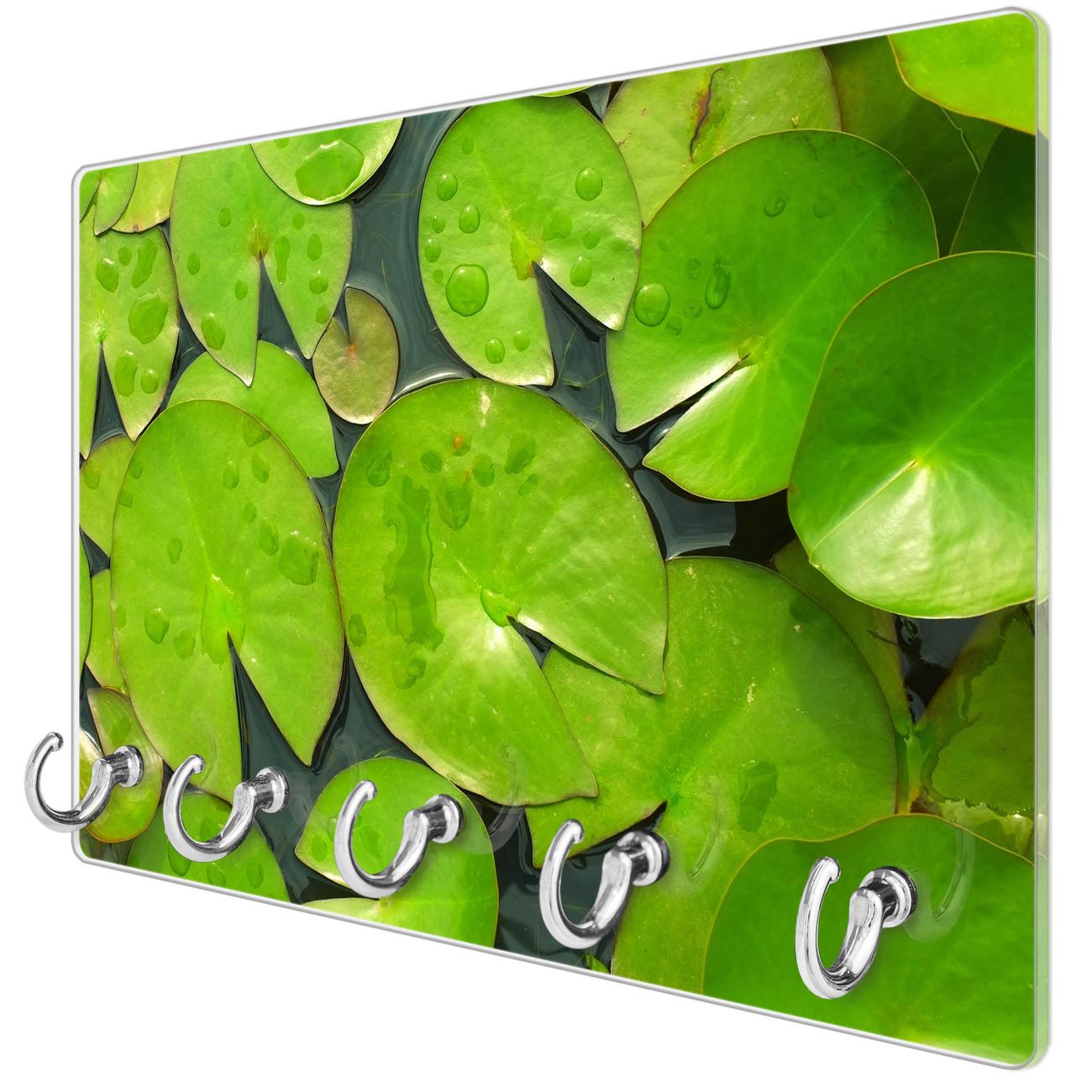 Glas Schlüsselbrett mit 5 Haken Seerosenblätter