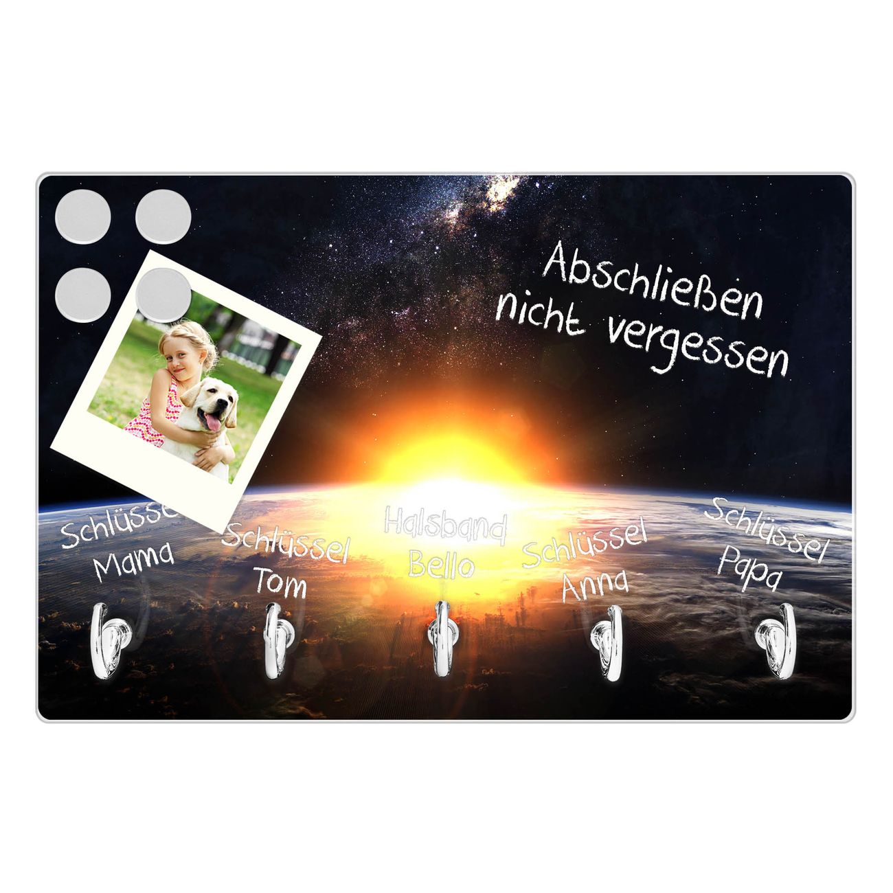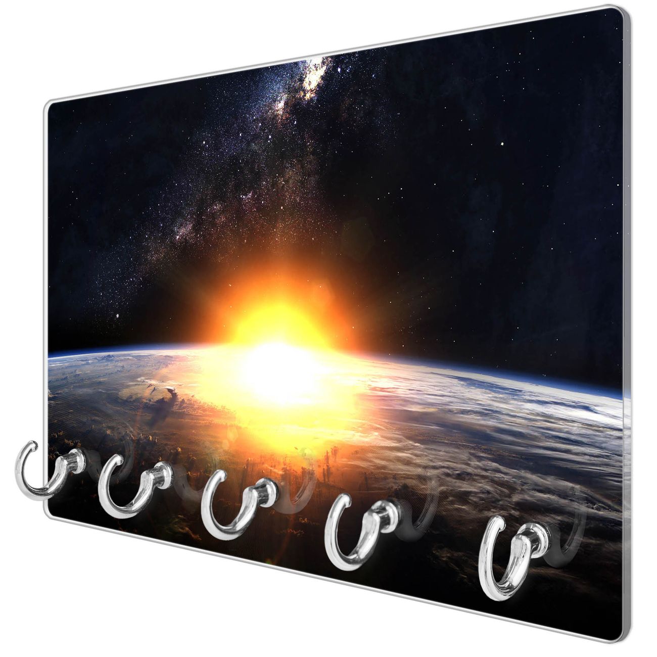 Glas Schlüsselbrett mit 5 Haken Sonne im Weltall