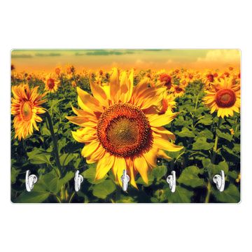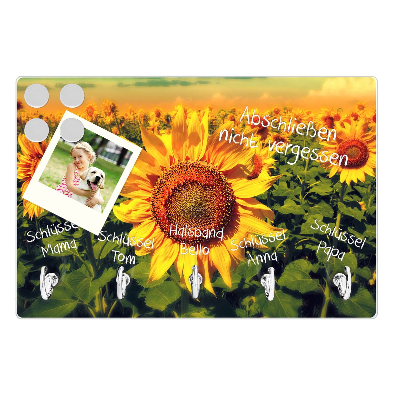 Glas Schlüsselbrett mit 5 Haken Sonnenblumen