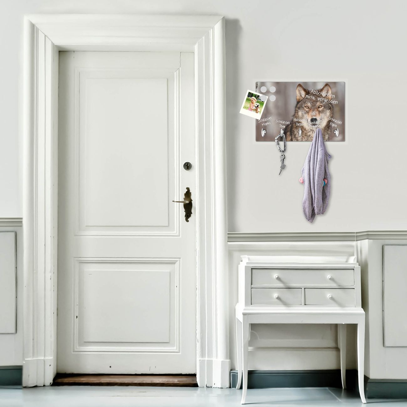 FUNKTION: Mit dem banjado Schlüsselbrett Soraya hat Ihre Suche nach dem Schlüsselbund endlich ein Ende! Auf gesamt 5 Haken finden auch die größten Schlüssel ihren Platz. Durch den farbenfrohen Motivdruck ist das Schlüsselboard ein Blickfang in jeder Wohnung. DESIGN: Die Schlüsselleiste mit Motiv Soraya hat ein sehr ansprechendes und ausgefallenes Design. Das Glasboard besteht aus einer gehärteten Glasscheibe mit dem Motiv Ihrer Wahl. Ihre neue Schlüsselaufbewahrung ist funktionell und ein optisches Highlight. DETAILS: Das Schlüsselbrett ist 30 x 20 x 4,5 CM (BxHxT). Das ganze Board besteht aus gehärtetem Sicherheitsglas, die Haken zur Selbstmontage präsentieren sich in Edelstahl-Optik. Für einen sicheren Halt erfolgt die Aufhängung an 2 vorgefertigten Haltern an der Rückseite. Das Montagematerial fügen wir bei. NUTZEN: Hier findet alles seinen Platz: Schlüsselbunde, Geschirrtücher, Hundeleinen oder Kinderjacken. Das Glas kann mit Kreidestiften bzw. Whiteboard-Marker beschrieben werden, mit extrastarken Neodym-Magneten können Sie auch Notizen anheften. BANJADO: Wir sind ein kleines Team aus dem Herzen von Sachsen und fertigen Ihre neue Schlüsselaufbewahrung von Hand an. Sie erhalten Handarbeit und keine preiswerte Importware. Wir hoffen, dass Ihnen unsere Idee zusagt, herzlichst das banjado Team.