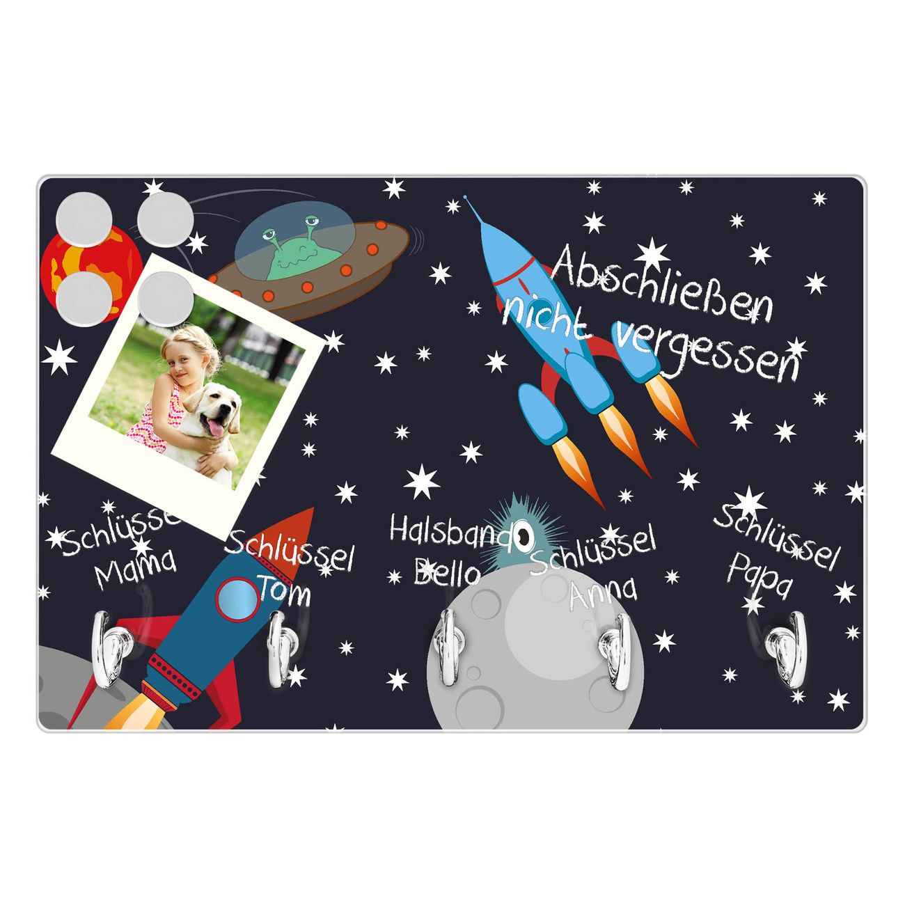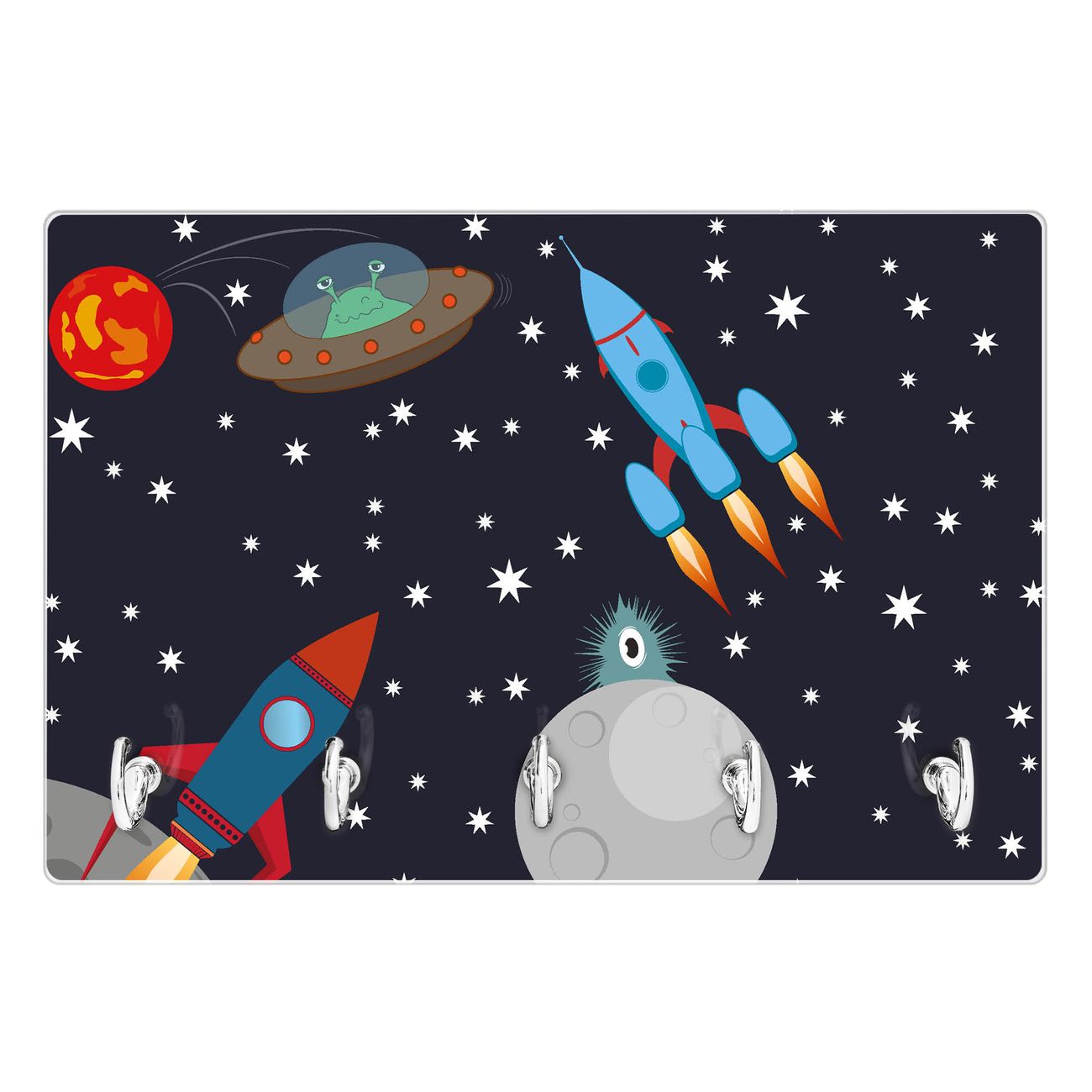 Glas Schlüsselbrett mit 5 Haken Space Traffic