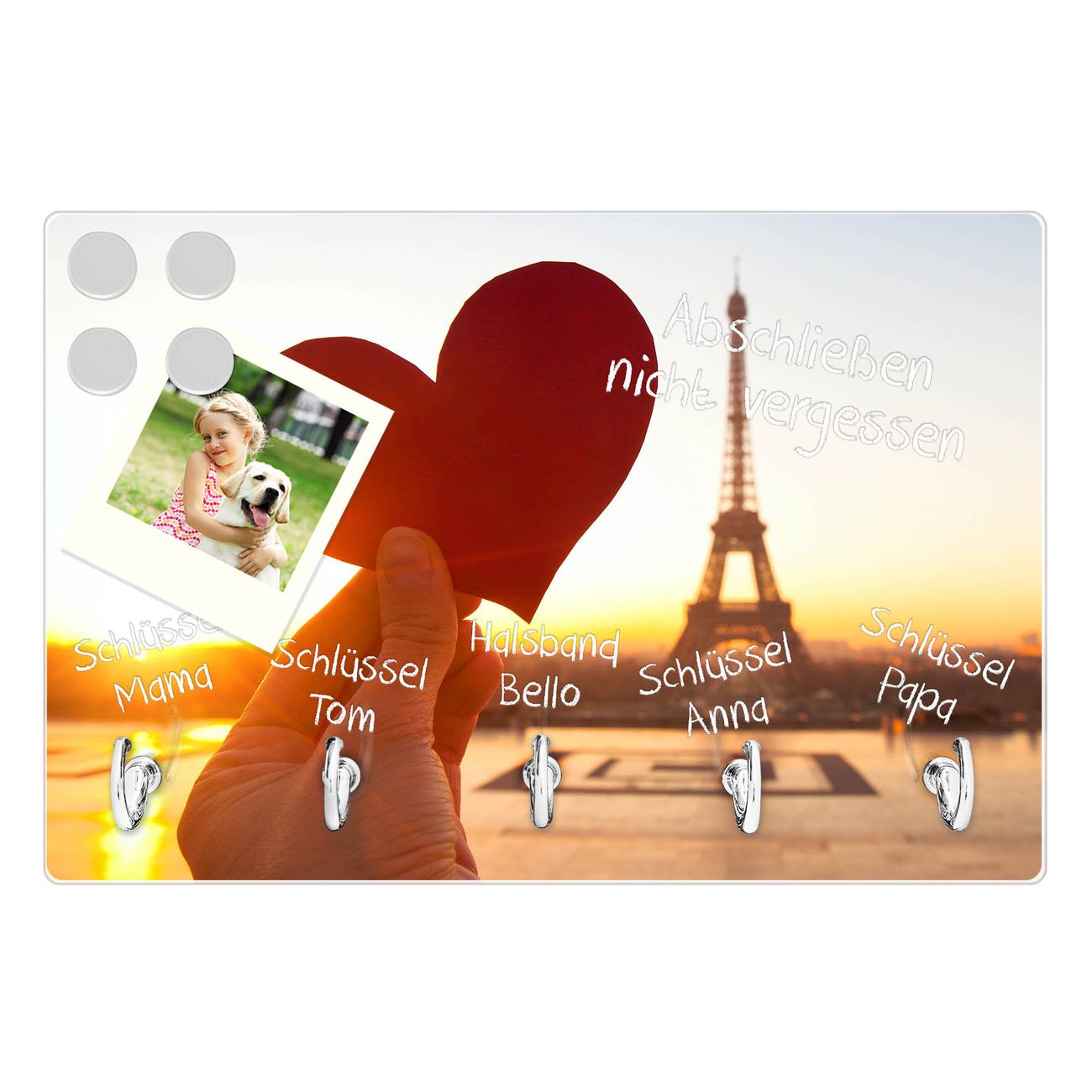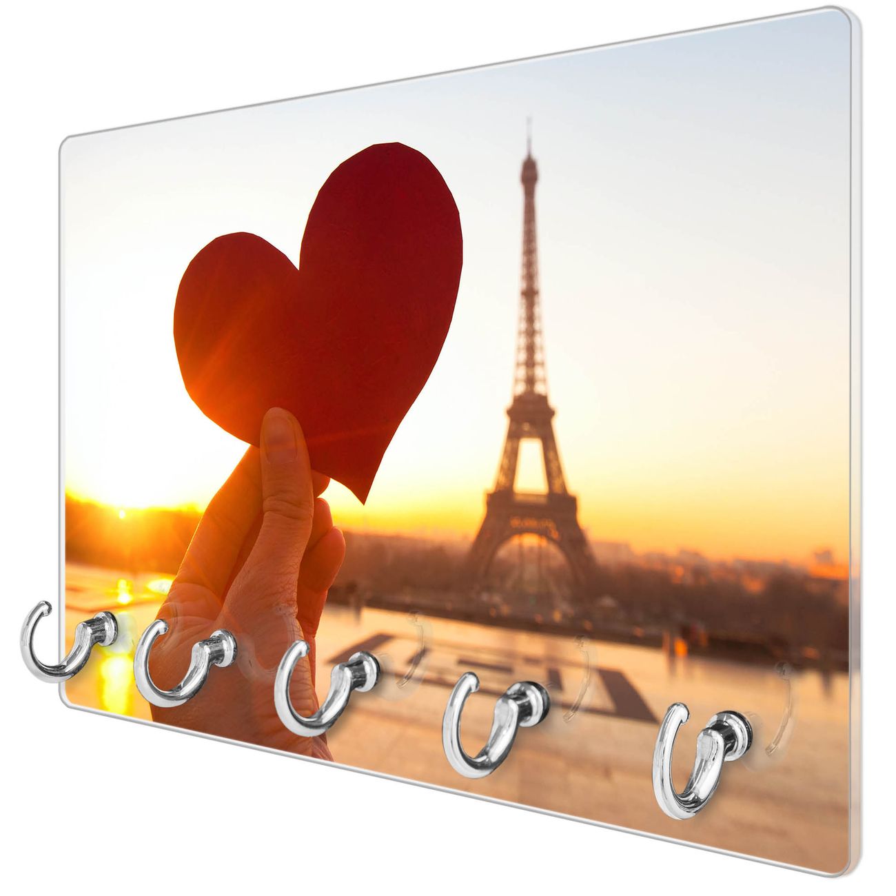 Glas Schlüsselbrett mit 5 Haken Stadt Der Liebe