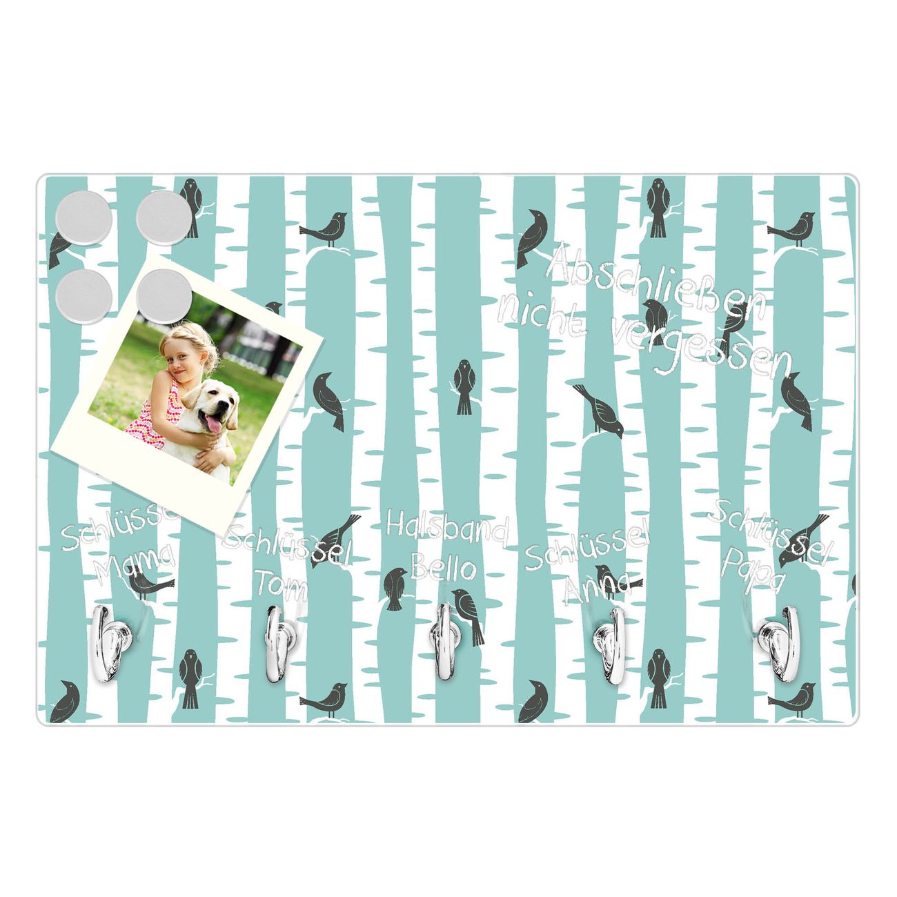 Glas Schlüsselbrett mit 5 Haken Stare Und Birken