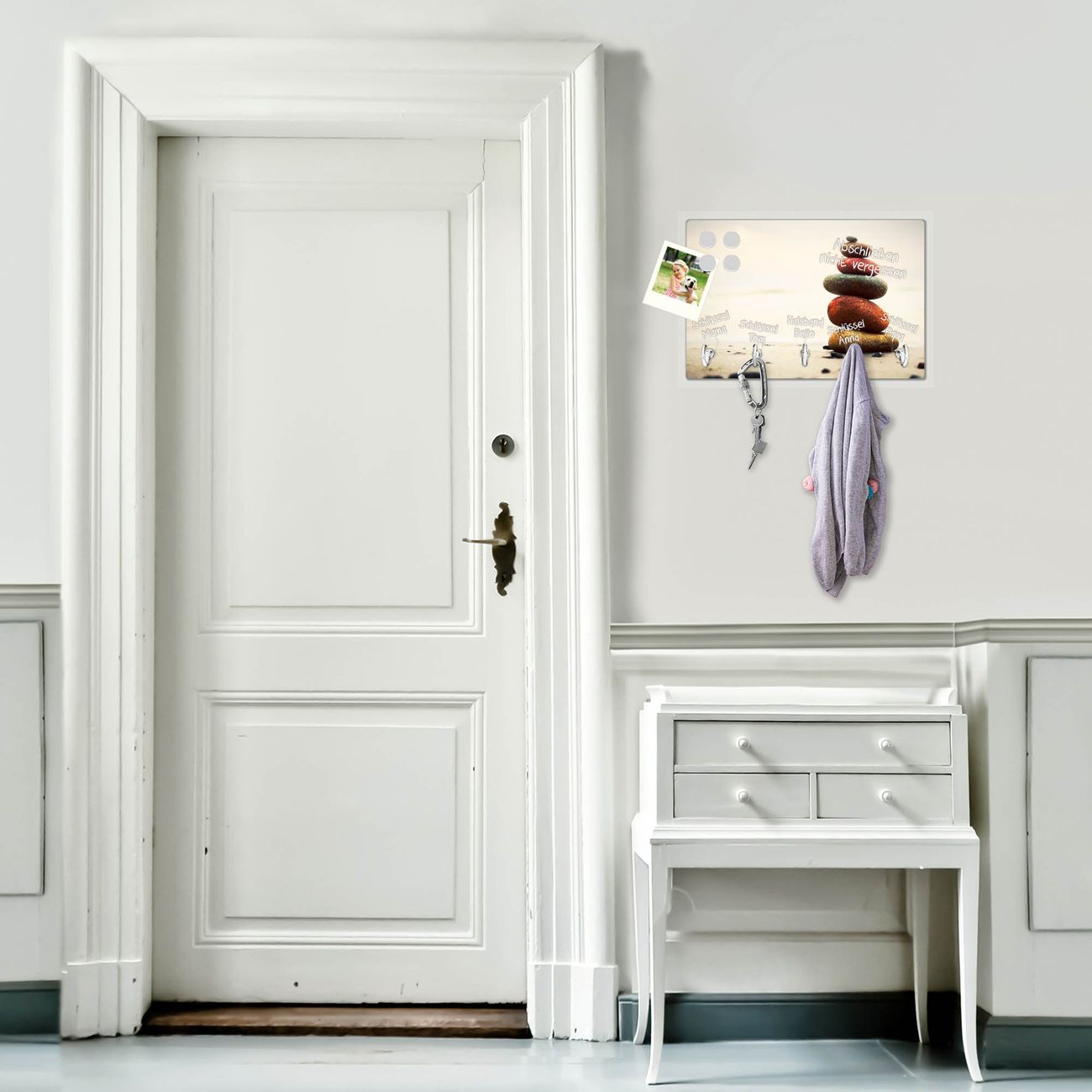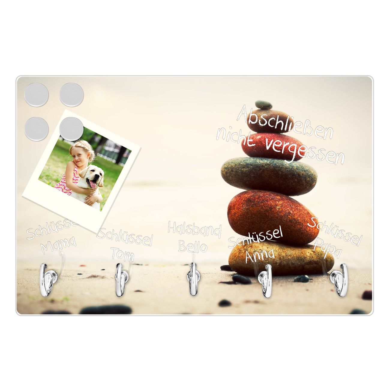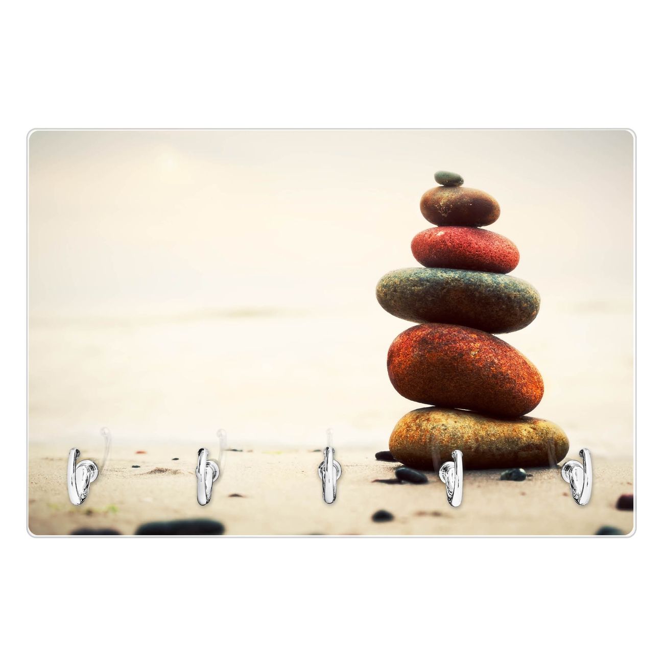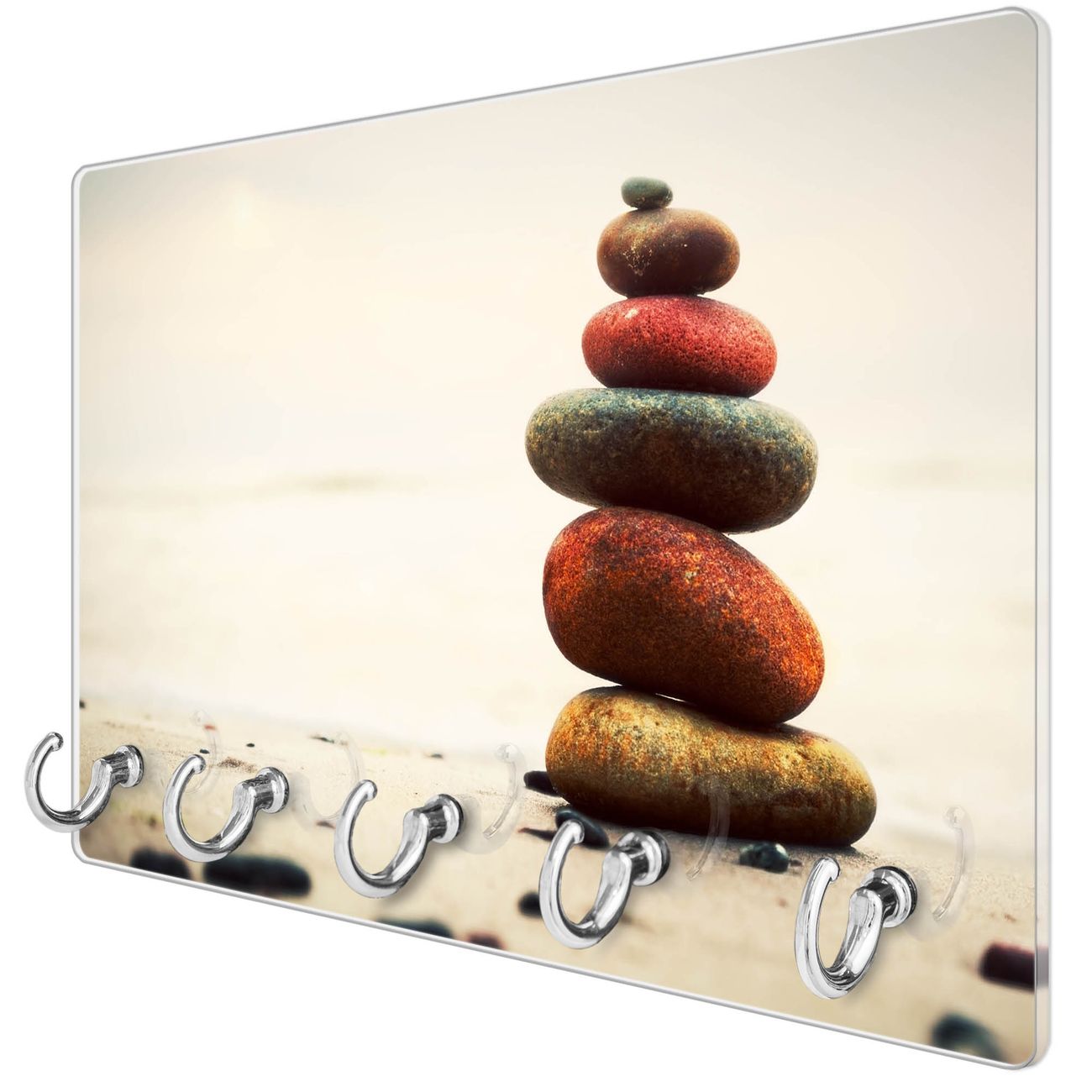 Glas Schlüsselbrett mit 5 Haken Steinmännchen