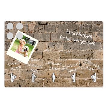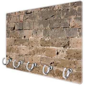 Glas Schlüsselbrett mit 5 Haken Steinwand Antik