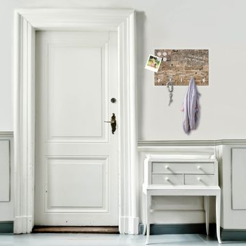 FUNKTION: Mit dem banjado Schlüsselbrett Steinwand Antik hat Ihre Suche nach dem Schlüsselbund endlich ein Ende! Auf gesamt 5 Haken finden auch die größten Schlüssel ihren Platz. Durch den farbenfrohen Motivdruck ist das Schlüsselboard ein Blickfang in jeder Wohnung. DESIGN: Die Schlüsselleiste mit Motiv Steinwand Antik hat ein sehr ansprechendes und ausgefallenes Design. Das Glasboard besteht aus einer gehärteten Glasscheibe mit dem Motiv Ihrer Wahl. Ihre neue Schlüsselaufbewahrung ist funktionell und ein optisches Highlight. DETAILS: Das Schlüsselbrett ist 30 x 20 x 4,5 CM (BxHxT). Das ganze Board besteht aus gehärtetem Sicherheitsglas, die Haken zur Selbstmontage präsentieren sich in Edelstahl-Optik. Für einen sicheren Halt erfolgt die Aufhängung an 2 vorgefertigten Haltern an der Rückseite. Das Montagematerial fügen wir bei. NUTZEN: Hier findet alles seinen Platz: Schlüsselbunde, Geschirrtücher, Hundeleinen oder Kinderjacken. Das Glas kann mit Kreidestiften bzw. Whiteboard-Marker beschrieben werden, mit extrastarken Neodym-Magneten können Sie auch Notizen anheften. BANJADO: Wir sind ein kleines Team aus dem Herzen von Sachsen und fertigen Ihre neue Schlüsselaufbewahrung von Hand an. Sie erhalten Handarbeit und keine preiswerte Importware. Wir hoffen, dass Ihnen unsere Idee zusagt, herzlichst das banjado Team.