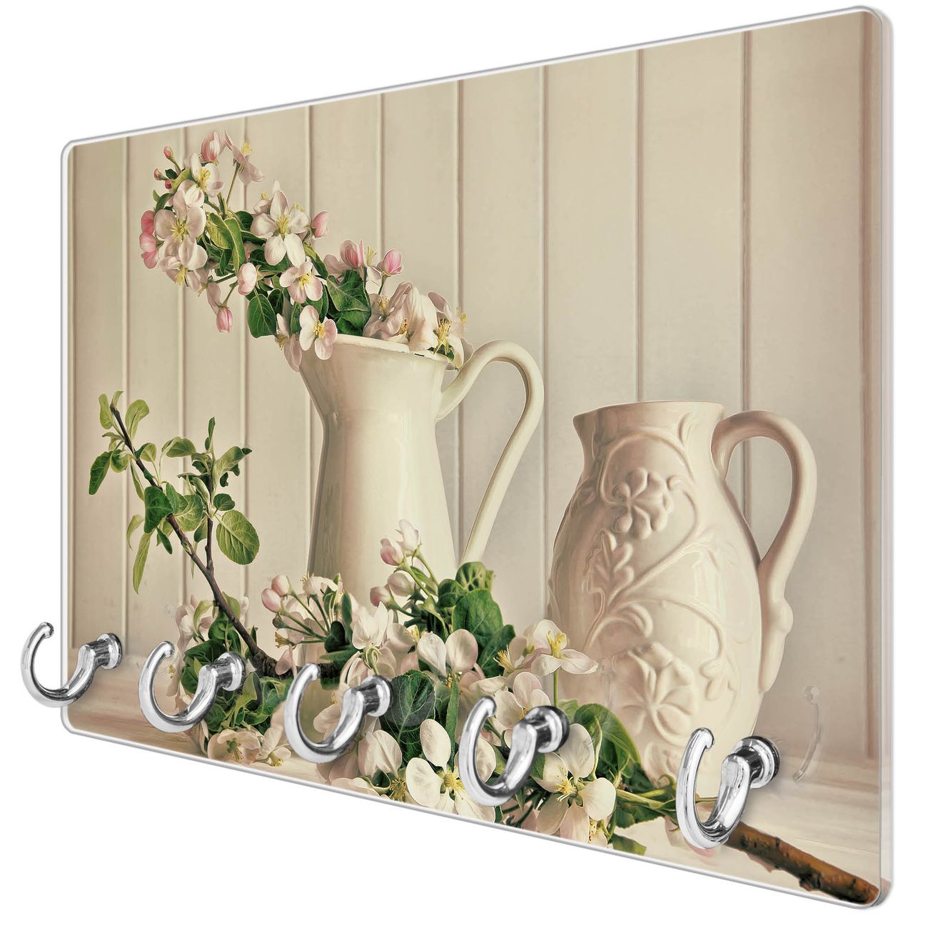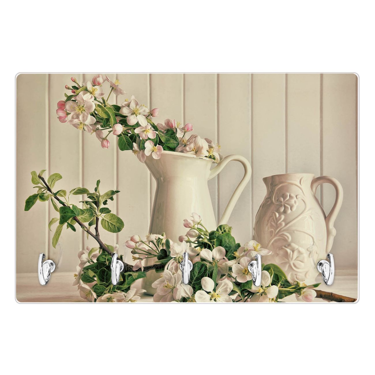Glas Schlüsselbrett mit 5 Haken Stillleben Kirschblüten