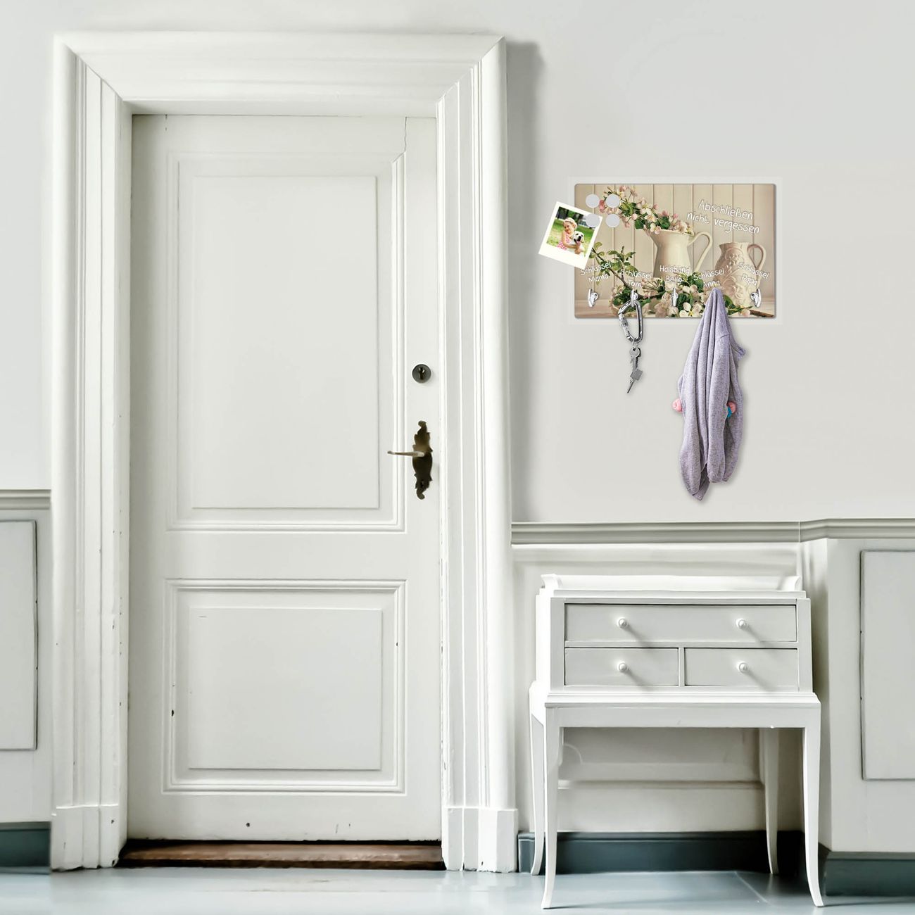 FUNKTION: Mit dem banjado Schlüsselbrett Stillleben Kirschblüten hat Ihre Suche nach dem Schlüsselbund endlich ein Ende! Auf gesamt 5 Haken finden auch die größten Schlüssel ihren Platz. Durch den farbenfrohen Motivdruck ist das Schlüsselboard ein Blickfang in jeder Wohnung. DESIGN: Die Schlüsselleiste mit Motiv Stillleben Kirschblüten hat ein sehr ansprechendes und ausgefallenes Design. Das Glasboard besteht aus einer gehärteten Glasscheibe mit dem Motiv Ihrer Wahl. Ihre neue Schlüsselaufbewahrung ist funktionell und ein optisches Highlight. DETAILS: Das Schlüsselbrett ist 30 x 20 x 4,5 CM (BxHxT). Das ganze Board besteht aus gehärtetem Sicherheitsglas, die Haken zur Selbstmontage präsentieren sich in Edelstahl-Optik. Für einen sicheren Halt erfolgt die Aufhängung an 2 vorgefertigten Haltern an der Rückseite. Das Montagematerial fügen wir bei. NUTZEN: Hier findet alles seinen Platz: Schlüsselbunde, Geschirrtücher, Hundeleinen oder Kinderjacken. Das Glas kann mit Kreidestiften bzw. Whiteboard-Marker beschrieben werden, mit extrastarken Neodym-Magneten können Sie auch Notizen anheften. BANJADO: Wir sind ein kleines Team aus dem Herzen von Sachsen und fertigen Ihre neue Schlüsselaufbewahrung von Hand an. Sie erhalten Handarbeit und keine preiswerte Importware. Wir hoffen, dass Ihnen unsere Idee zusagt, herzlichst das banjado Team.