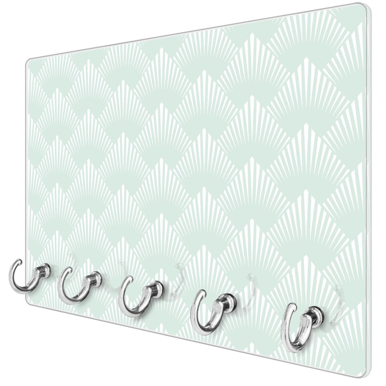 Glas Schlüsselbrett mit 5 Haken Strahlen Mint