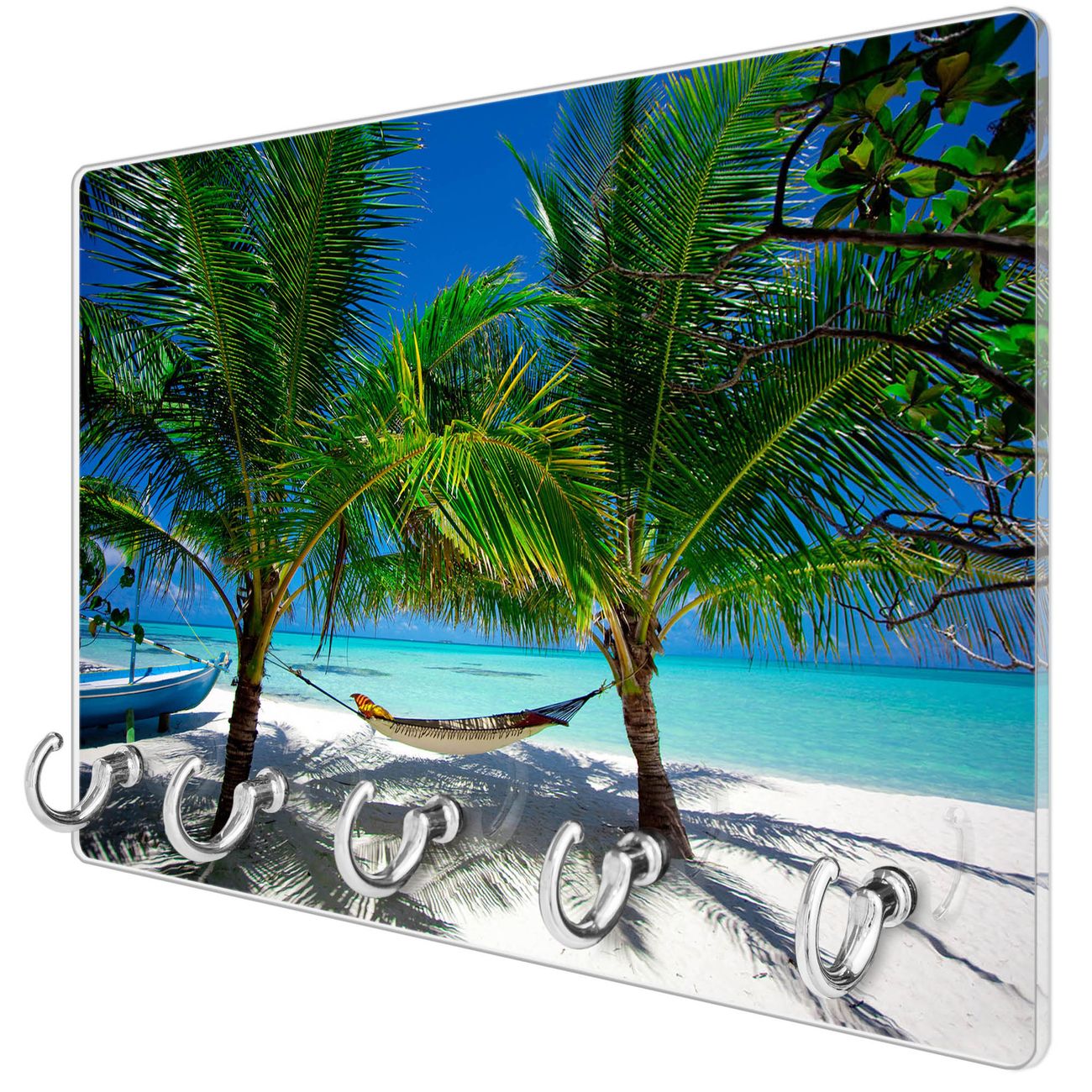 Glas Schlüsselbrett mit 5 Haken Strand
