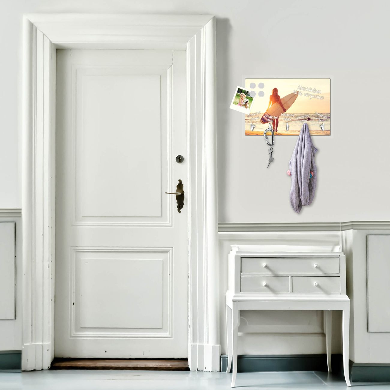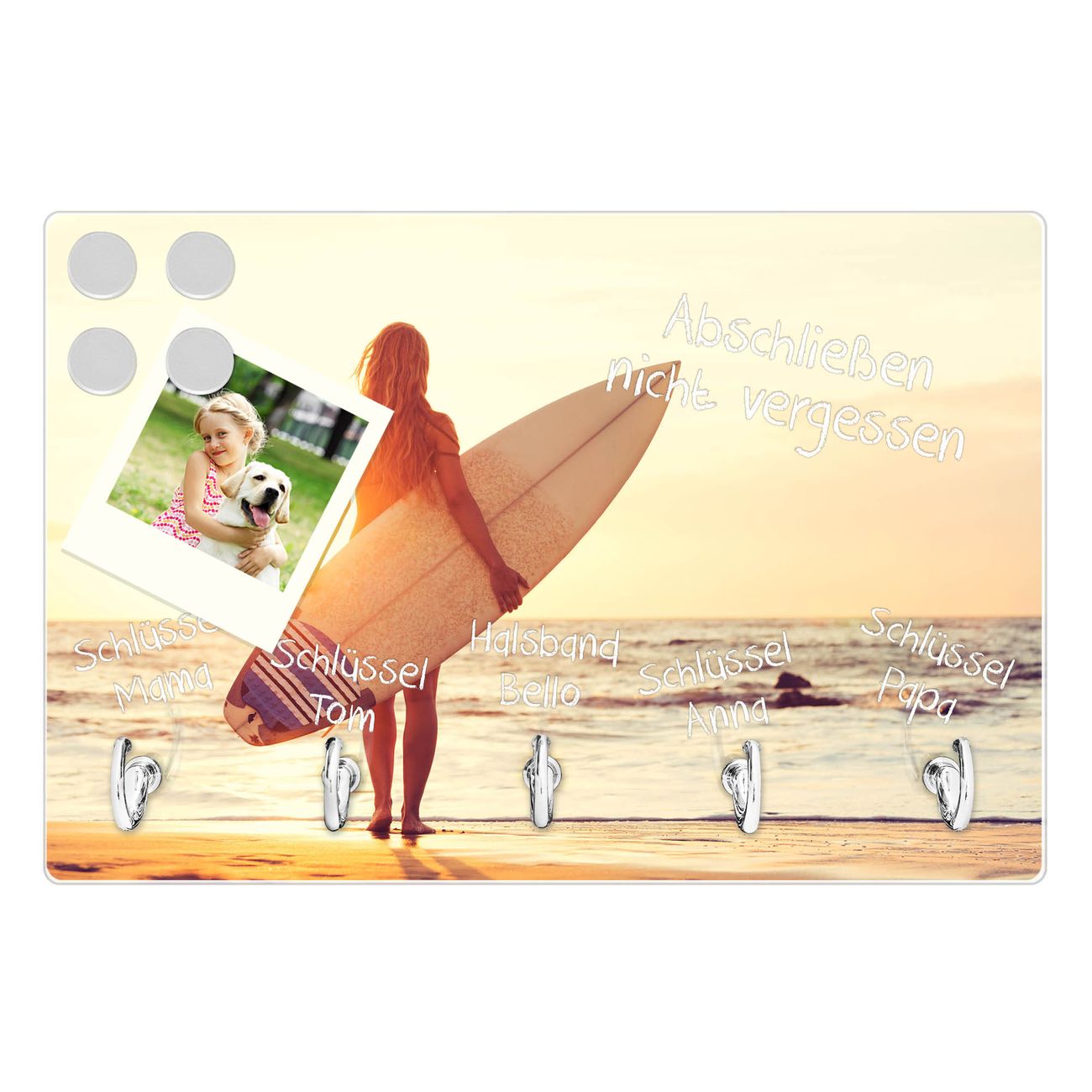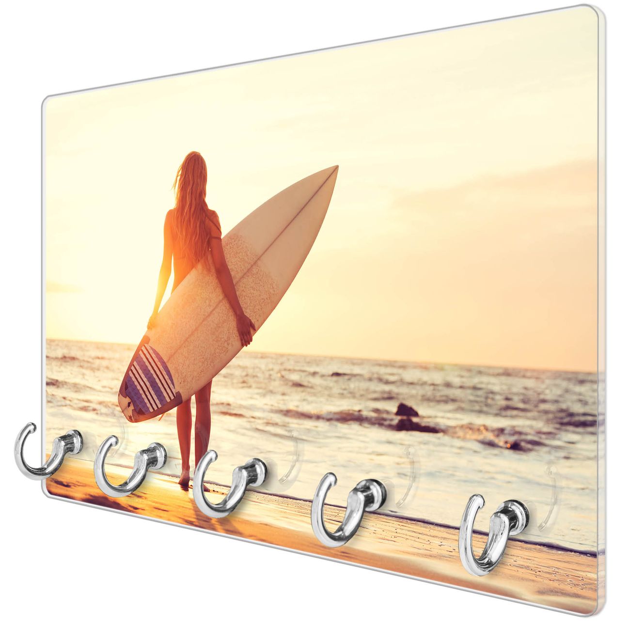 Glas Schlüsselbrett mit 5 Haken Surfer Girl