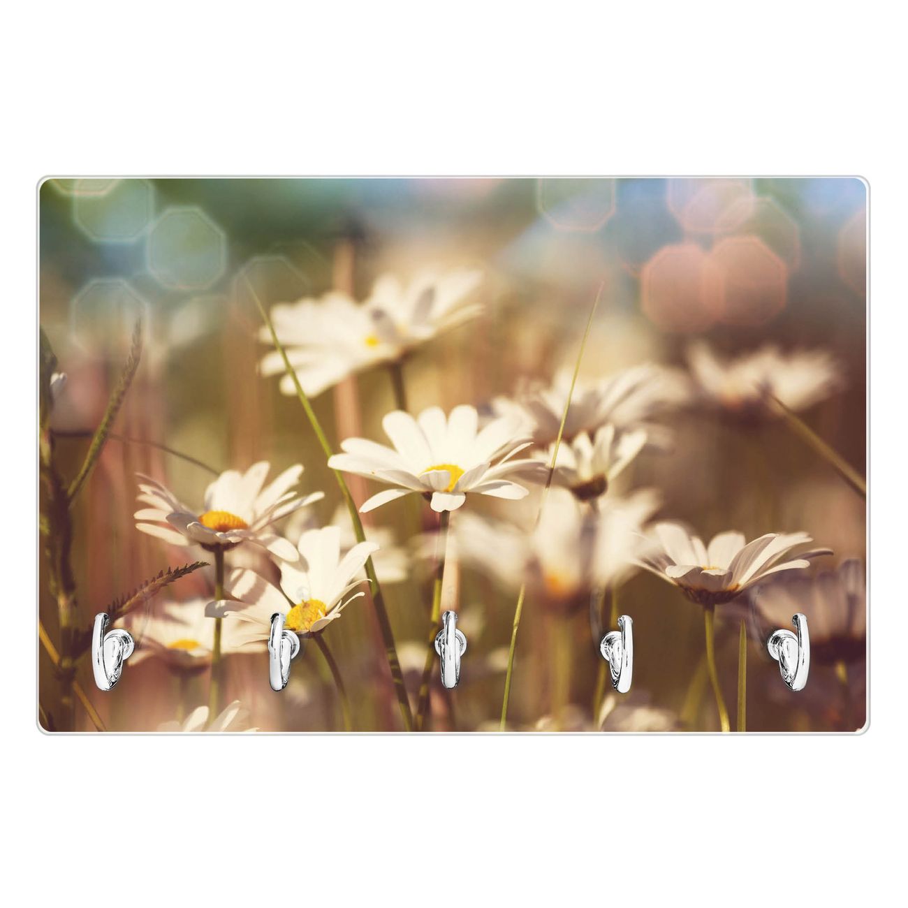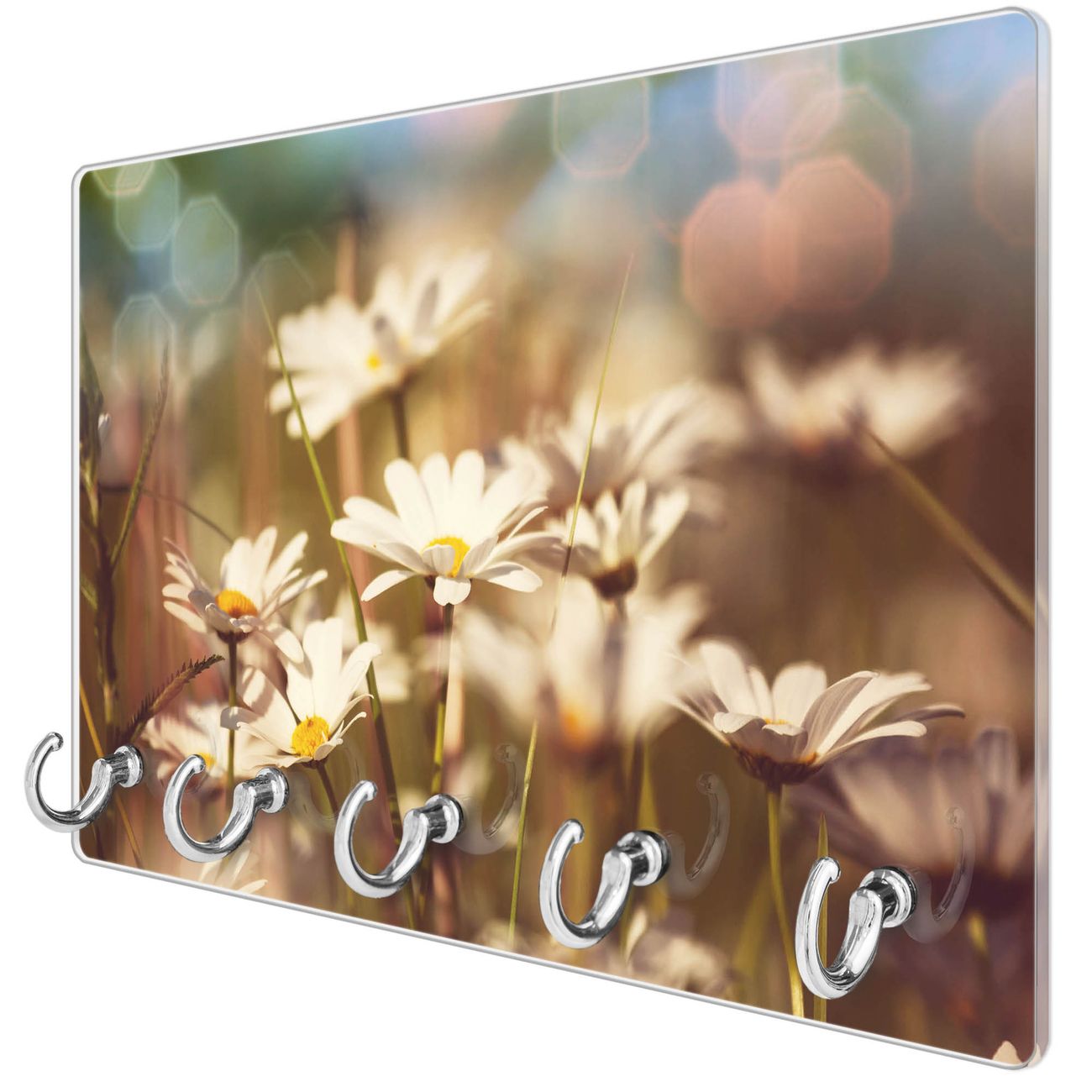 Glas Schlüsselbrett mit 5 Haken Tausendschönwiese