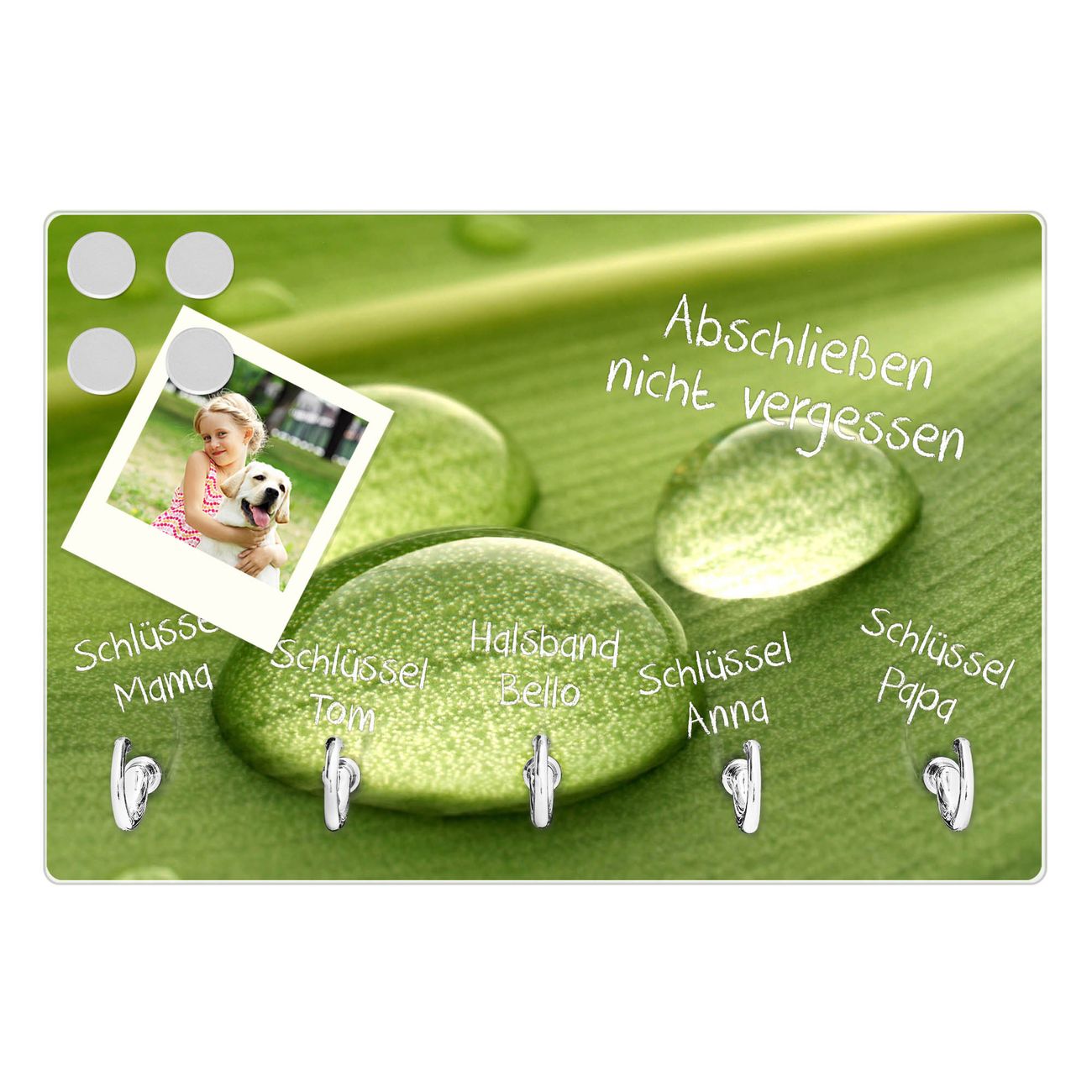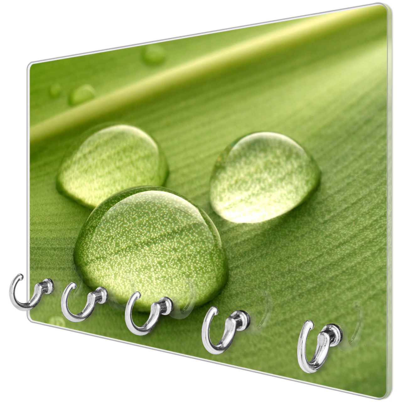 Glas Schlüsselbrett mit 5 Haken Tautropfen