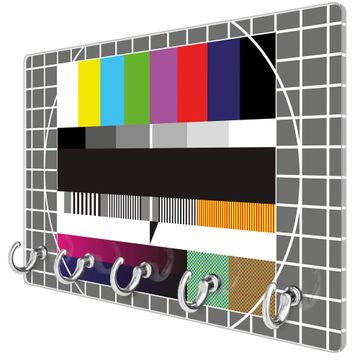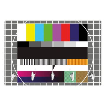FUNKTION: Mit dem banjado Schlüsselbrett Testbild hat Ihre Suche nach dem Schlüsselbund endlich ein Ende! Auf gesamt 5 Haken finden auch die größten Schlüssel ihren Platz. Durch den farbenfrohen Motivdruck ist das Schlüsselboard ein Blickfang in jeder Wohnung. DESIGN: Die Schlüsselleiste mit Motiv Testbild hat ein sehr ansprechendes und ausgefallenes Design. Das Glasboard besteht aus einer gehärteten Glasscheibe mit dem Motiv Ihrer Wahl. Ihre neue Schlüsselaufbewahrung ist funktionell und ein optisches Highlight. DETAILS: Das Schlüsselbrett ist 30 x 20 x 4,5 CM (BxHxT). Das ganze Board besteht aus gehärtetem Sicherheitsglas, die Haken zur Selbstmontage präsentieren sich in Edelstahl-Optik. Für einen sicheren Halt erfolgt die Aufhängung an 2 vorgefertigten Haltern an der Rückseite. Das Montagematerial fügen wir bei. NUTZEN: Hier findet alles seinen Platz: Schlüsselbunde, Geschirrtücher, Hundeleinen oder Kinderjacken. Das Glas kann mit Kreidestiften bzw. Whiteboard-Marker beschrieben werden, mit extrastarken Neodym-Magneten können Sie auch Notizen anheften. BANJADO: Wir sind ein kleines Team aus dem Herzen von Sachsen und fertigen Ihre neue Schlüsselaufbewahrung von Hand an. Sie erhalten Handarbeit und keine preiswerte Importware. Wir hoffen, dass Ihnen unsere Idee zusagt, herzlichst das banjado Team.