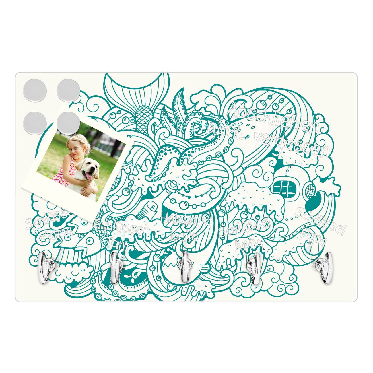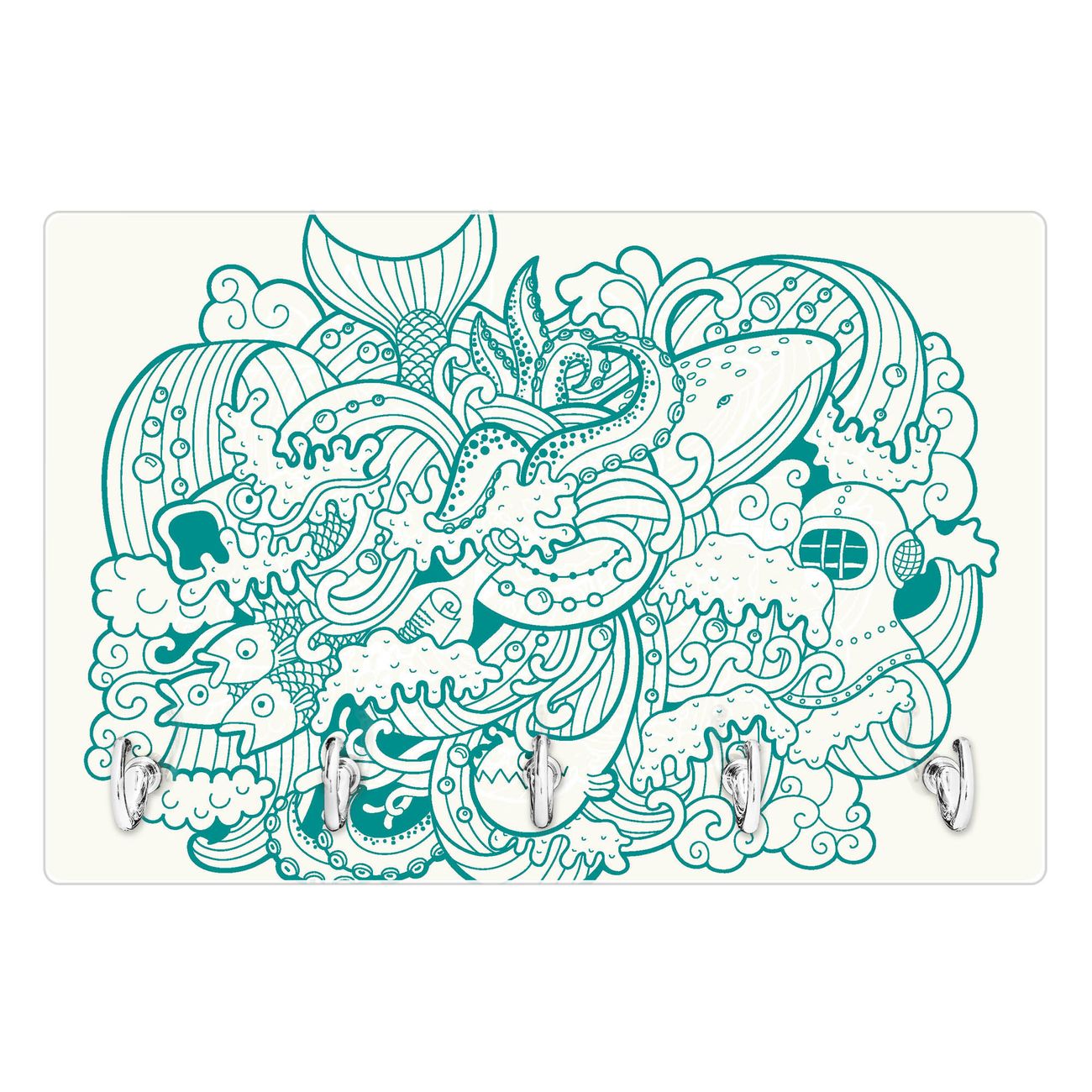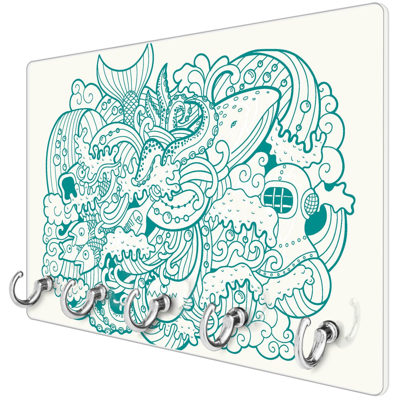 Glas Schlüsselbrett mit 5 Haken Tiefsee