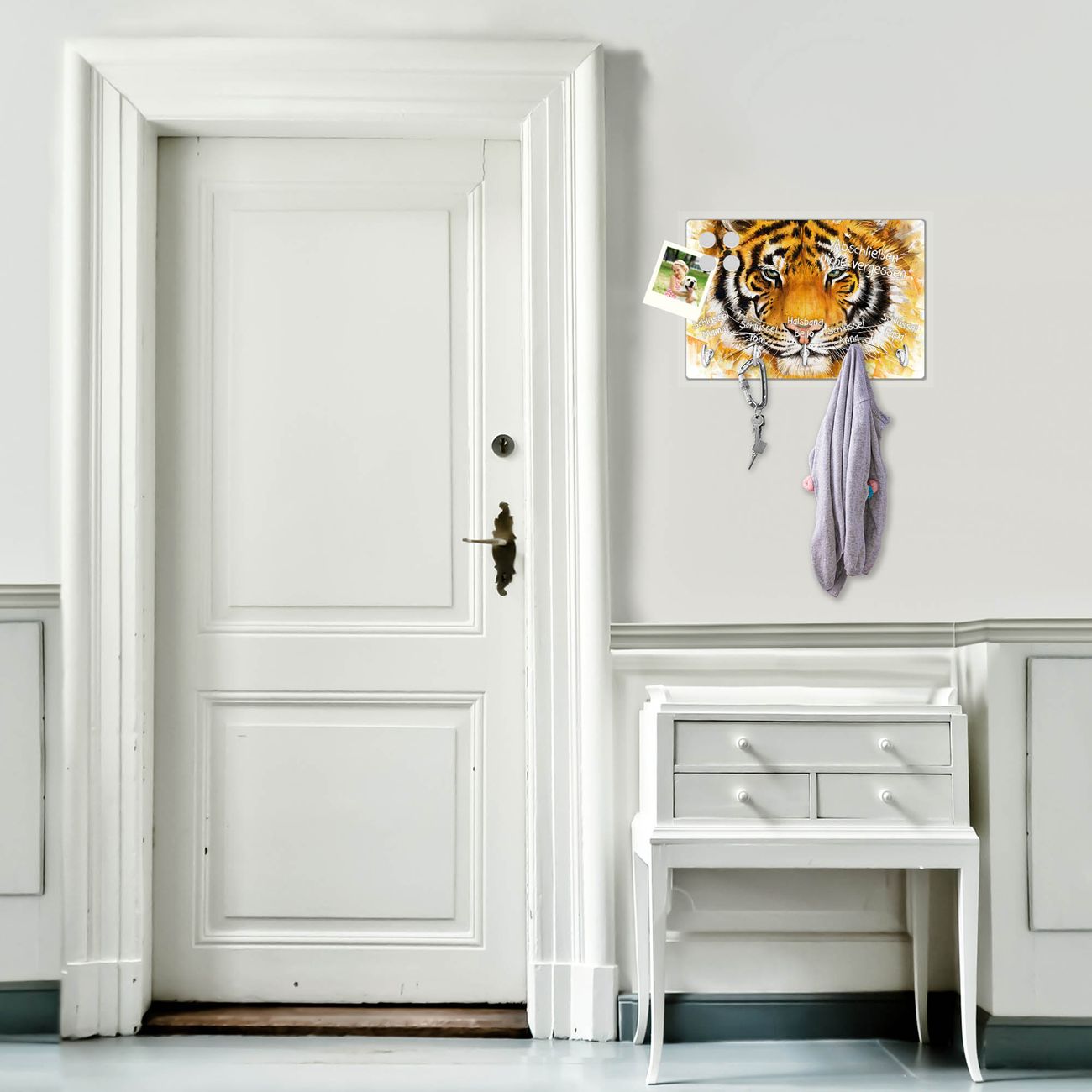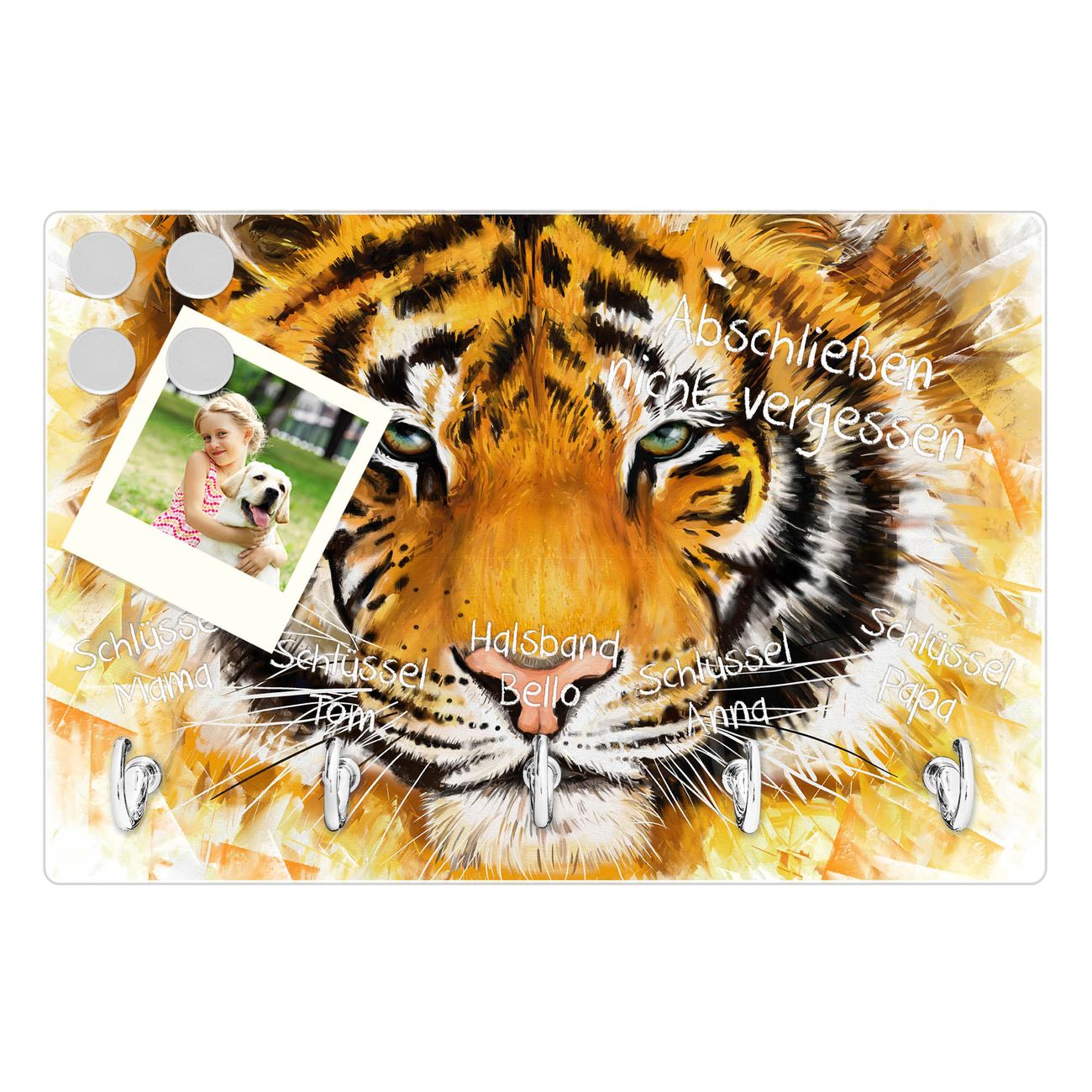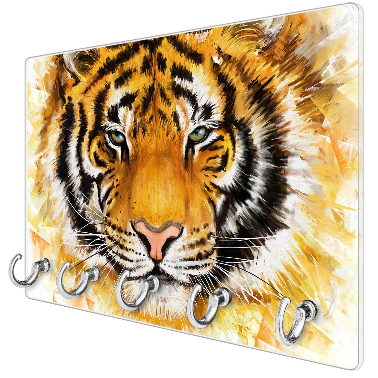Glas Schlüsselbrett mit 5 Haken Tigerkopf