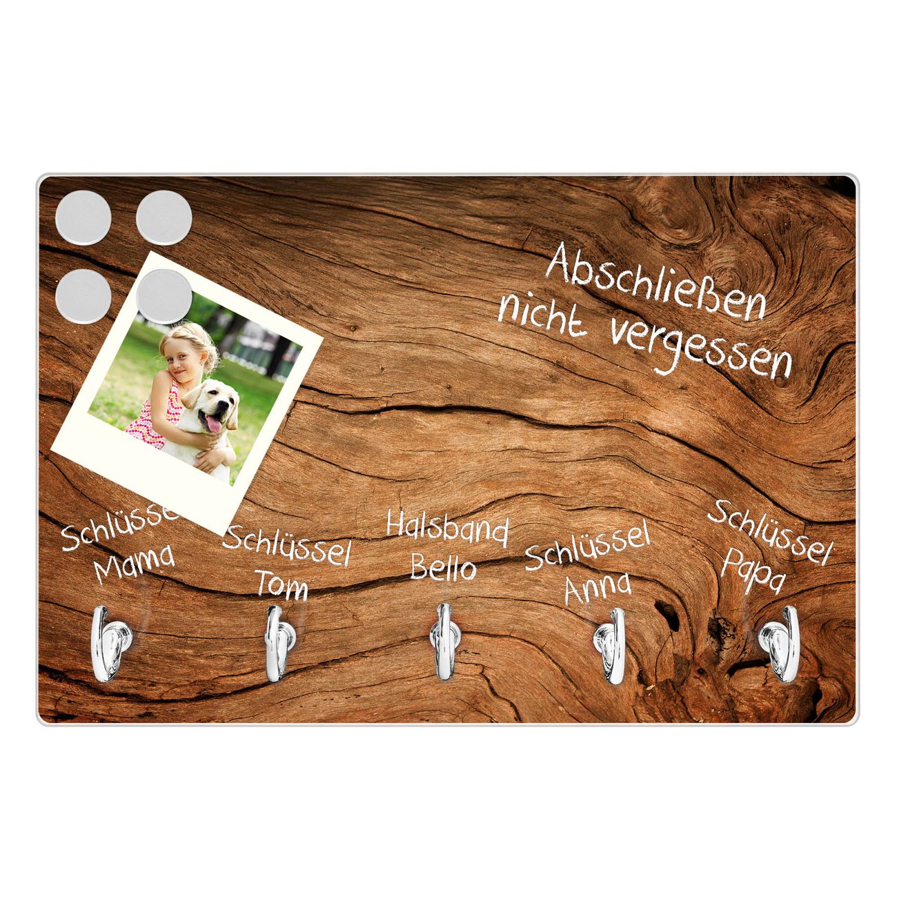Glas Schlüsselbrett mit 5 Haken Trockenes Holz