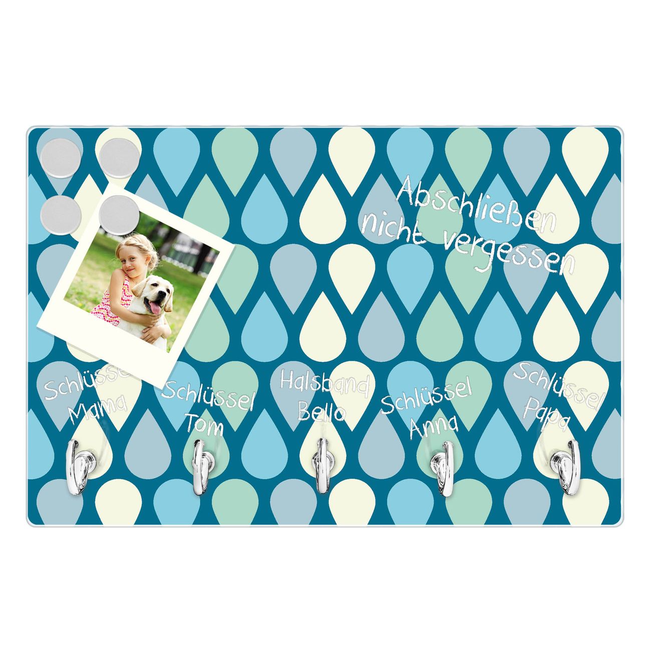 Glas Schlüsselbrett mit 5 Haken Tropfen