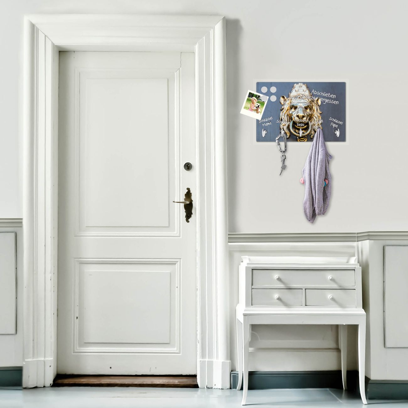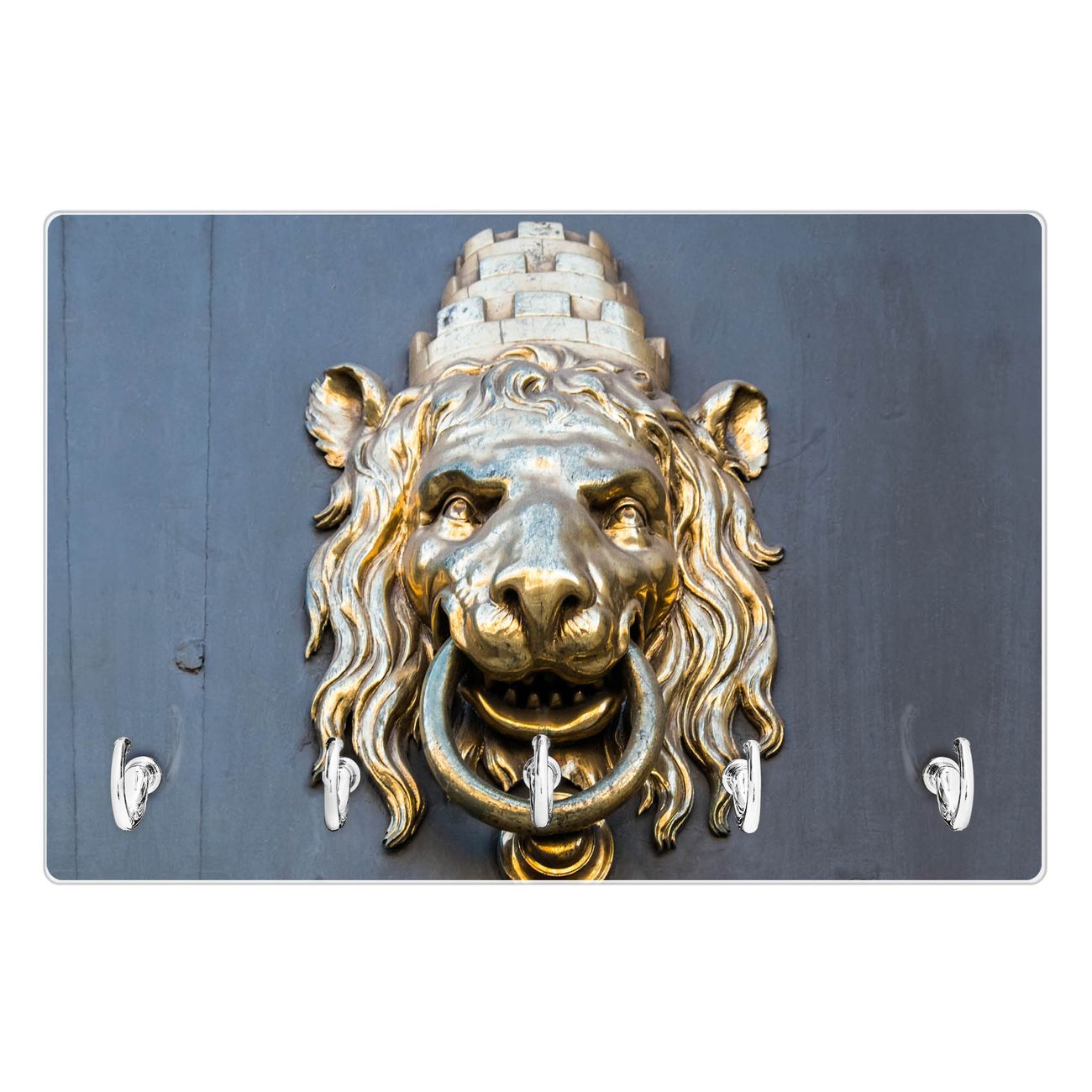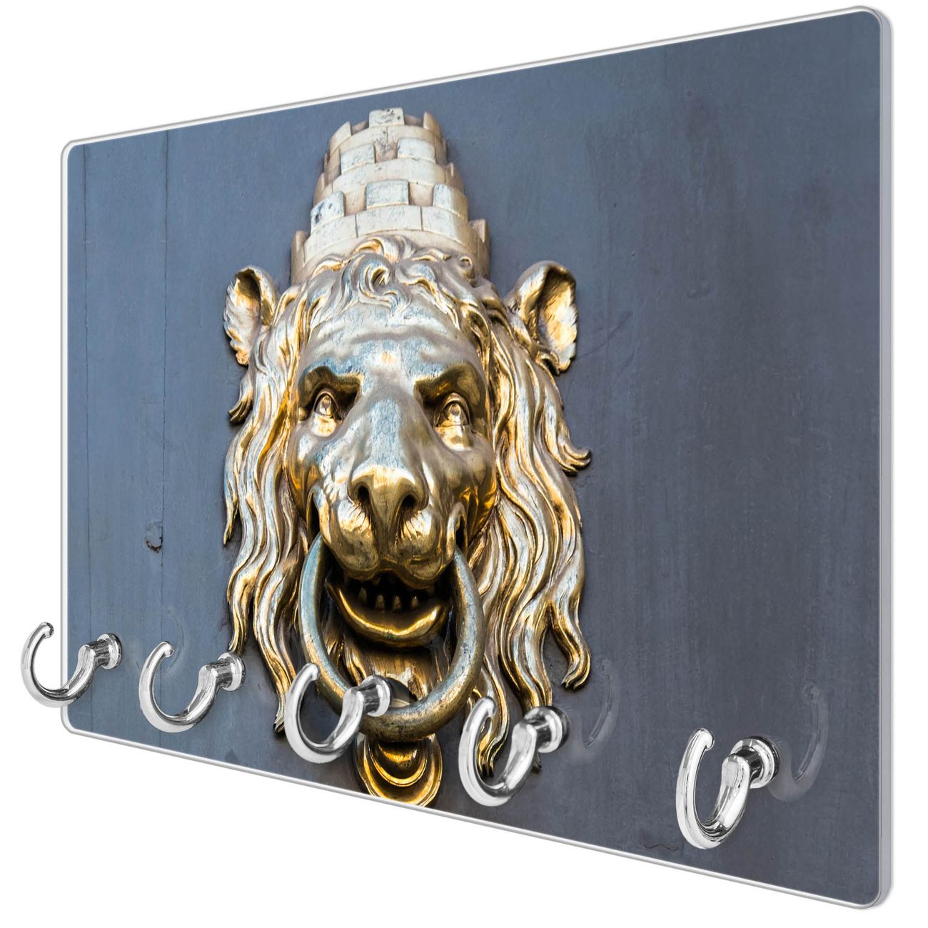 Glas Schlüsselbrett mit 5 Haken Türklopfer Löwe