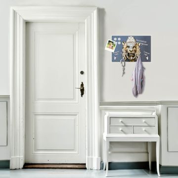 FUNKTION: Mit dem banjado Schlüsselbrett Türklopfer Löwe hat Ihre Suche nach dem Schlüsselbund endlich ein Ende! Auf gesamt 5 Haken finden auch die größten Schlüssel ihren Platz. Durch den farbenfrohen Motivdruck ist das Schlüsselboard ein Blickfang in jeder Wohnung. DESIGN: Die Schlüsselleiste mit Motiv Türklopfer Löwe hat ein sehr ansprechendes und ausgefallenes Design. Das Glasboard besteht aus einer gehärteten Glasscheibe mit dem Motiv Ihrer Wahl. Ihre neue Schlüsselaufbewahrung ist funktionell und ein optisches Highlight. DETAILS: Das Schlüsselbrett ist 30 x 20 x 4,5 CM (BxHxT). Das ganze Board besteht aus gehärtetem Sicherheitsglas, die Haken zur Selbstmontage präsentieren sich in Edelstahl-Optik. Für einen sicheren Halt erfolgt die Aufhängung an 2 vorgefertigten Haltern an der Rückseite. Das Montagematerial fügen wir bei. NUTZEN: Hier findet alles seinen Platz: Schlüsselbunde, Geschirrtücher, Hundeleinen oder Kinderjacken. Das Glas kann mit Kreidestiften bzw. Whiteboard-Marker beschrieben werden, mit extrastarken Neodym-Magneten können Sie auch Notizen anheften. BANJADO: Wir sind ein kleines Team aus dem Herzen von Sachsen und fertigen Ihre neue Schlüsselaufbewahrung von Hand an. Sie erhalten Handarbeit und keine preiswerte Importware. Wir hoffen, dass Ihnen unsere Idee zusagt, herzlichst das banjado Team.