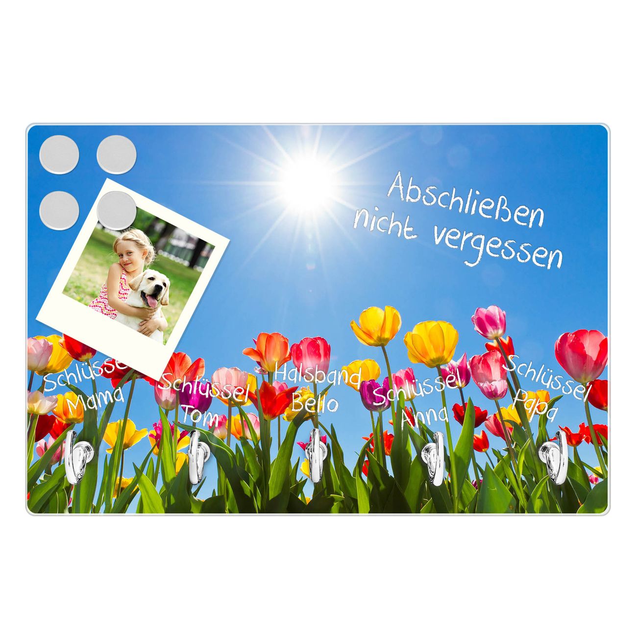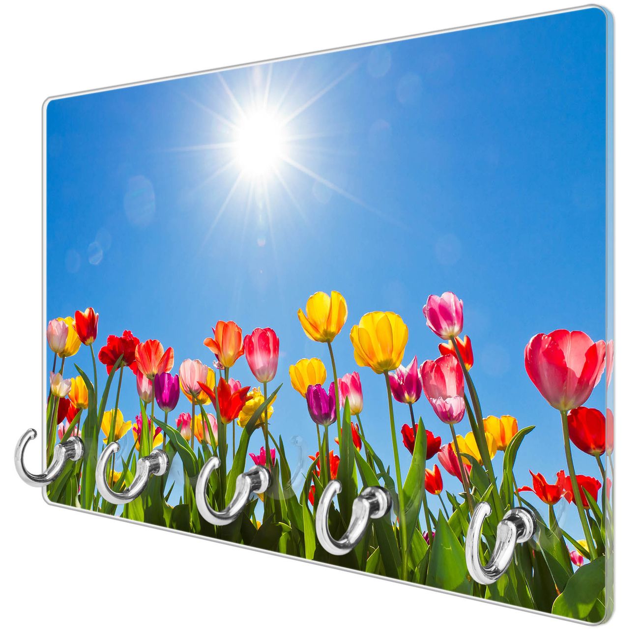 Glas Schlüsselbrett mit 5 Haken Tulpenmeer