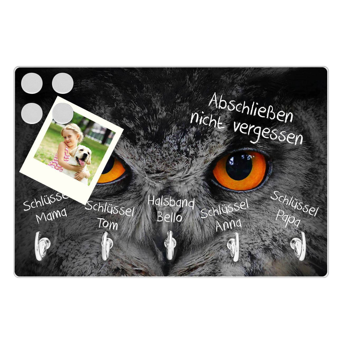 Glas Schlüsselbrett mit 5 Haken Uhu