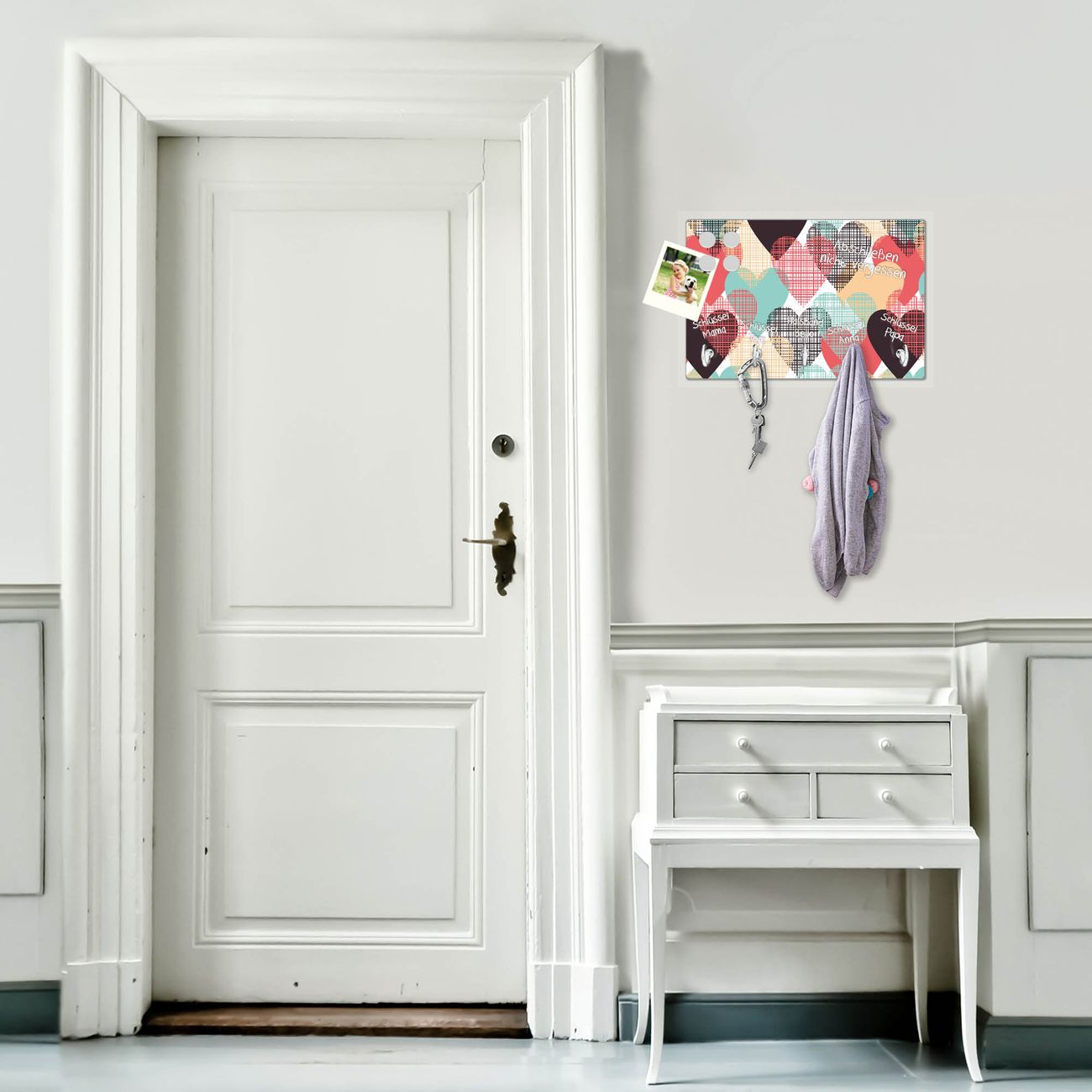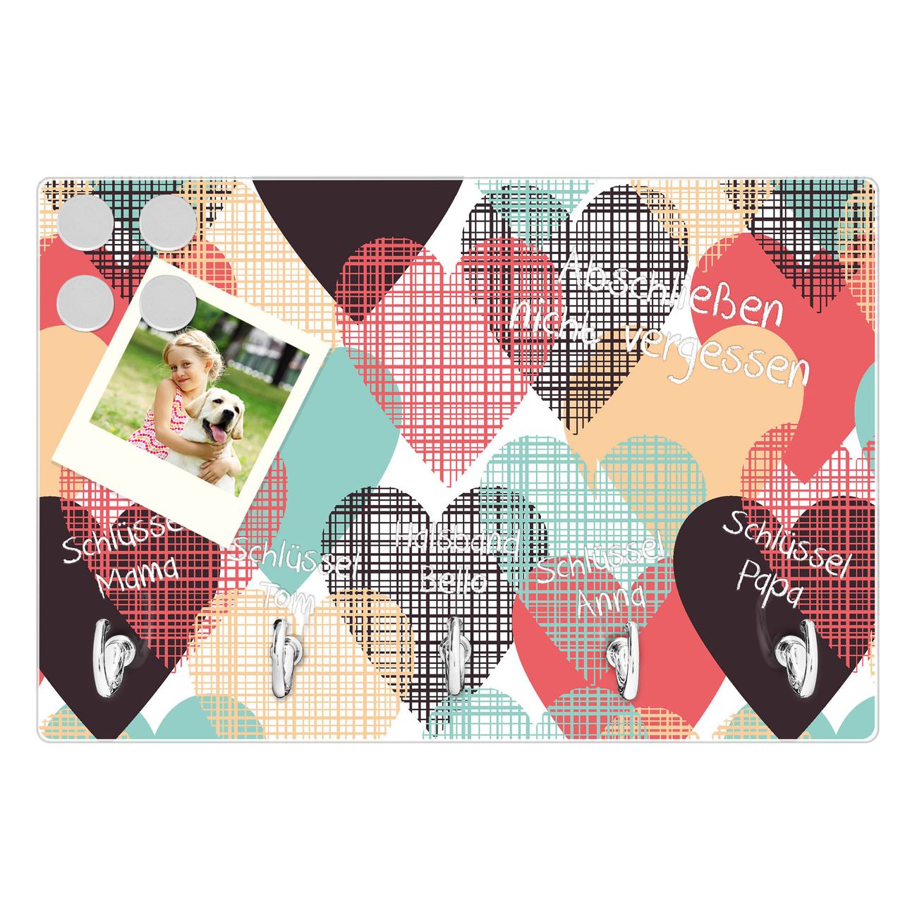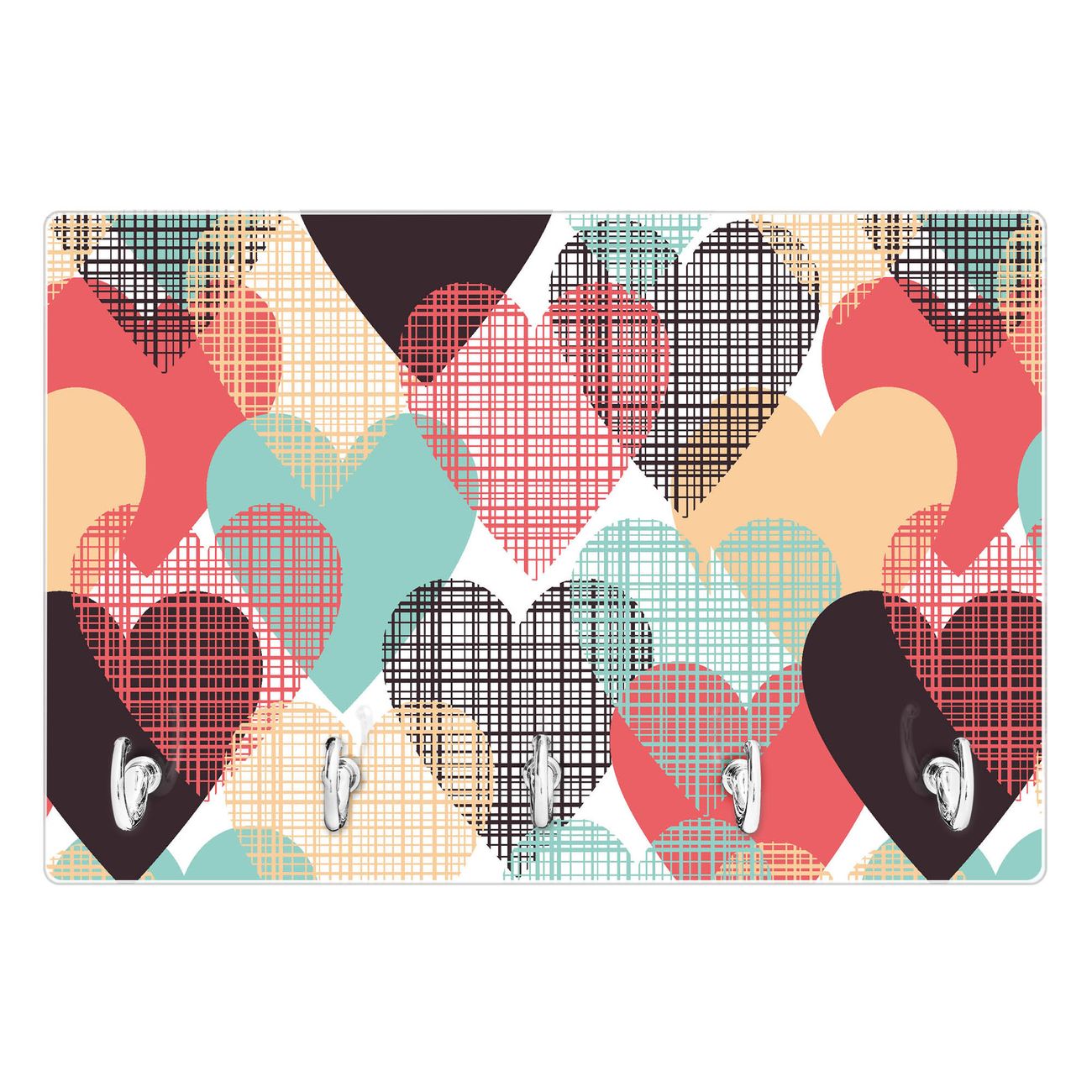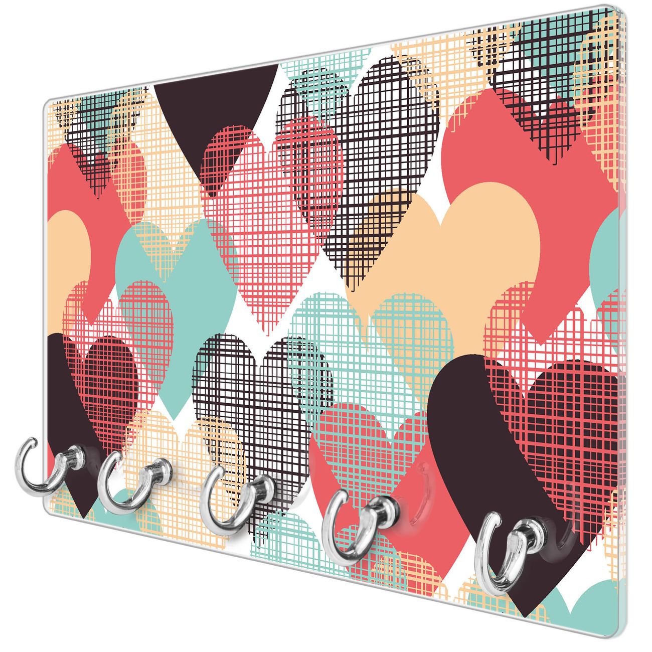 Glas Schlüsselbrett mit 5 Haken Unter Herzen