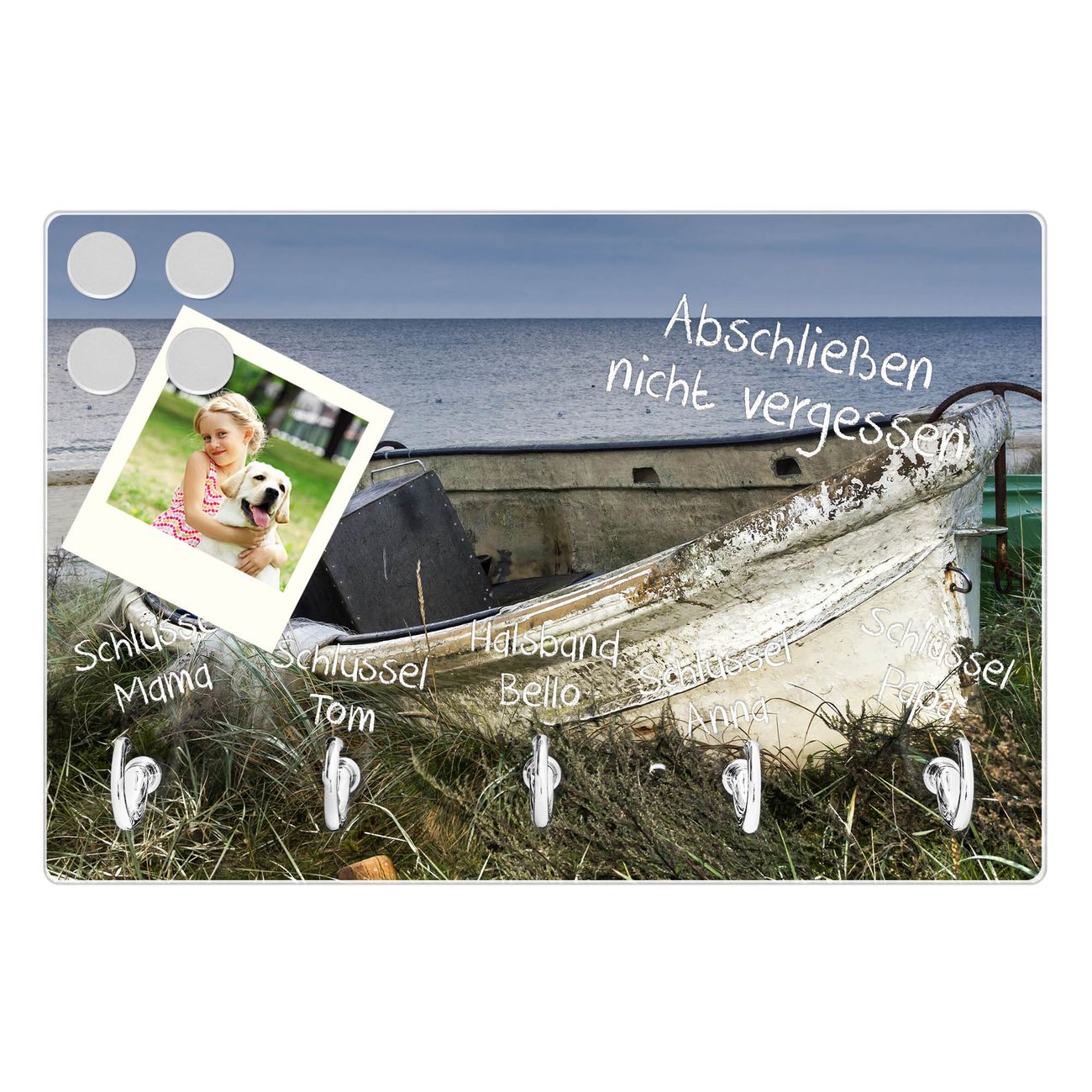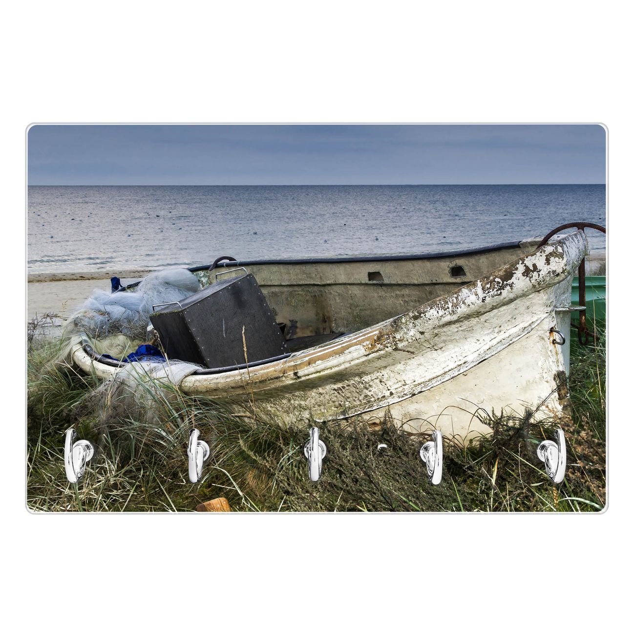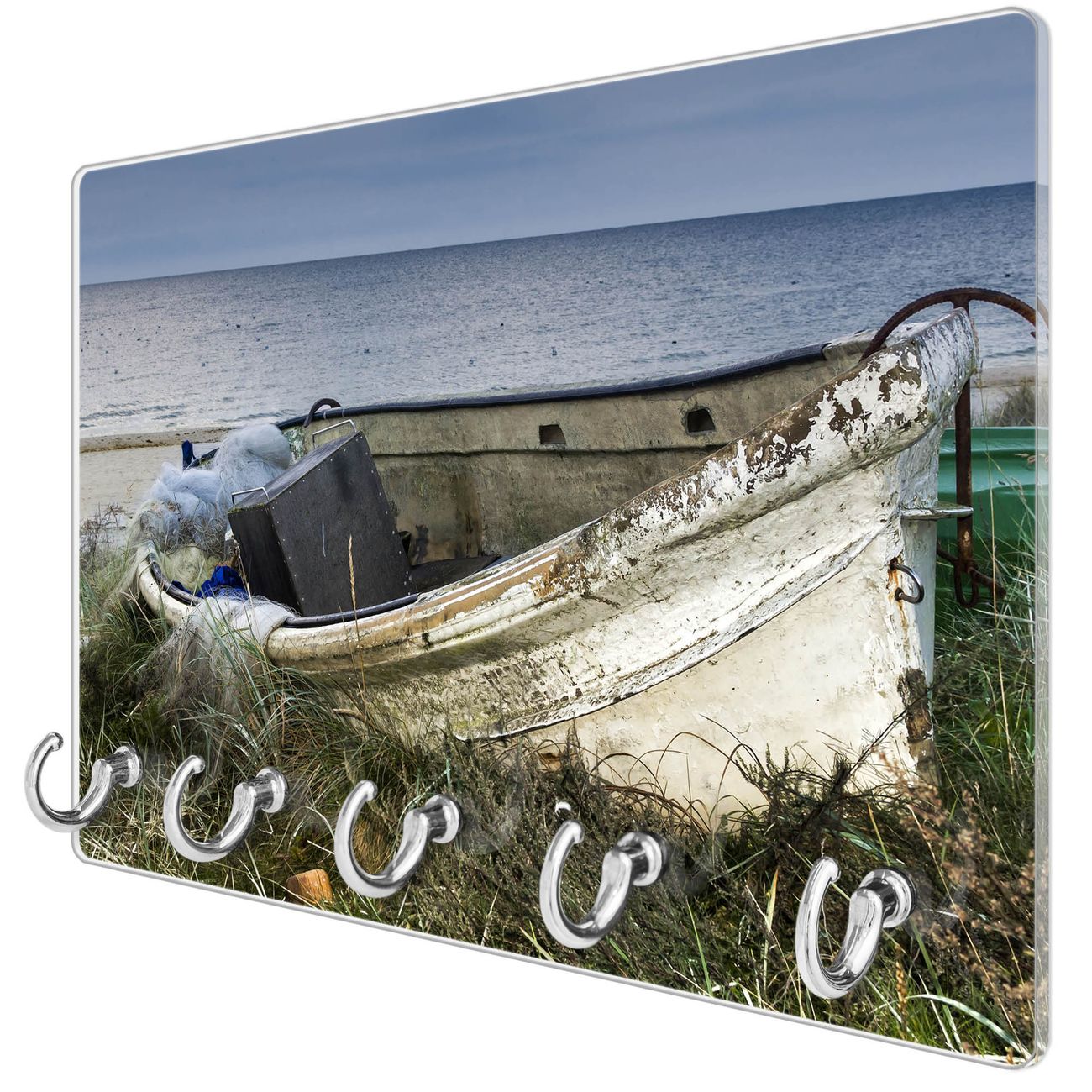 Glas Schlüsselbrett mit 5 Haken Vergessenes Fischerboot