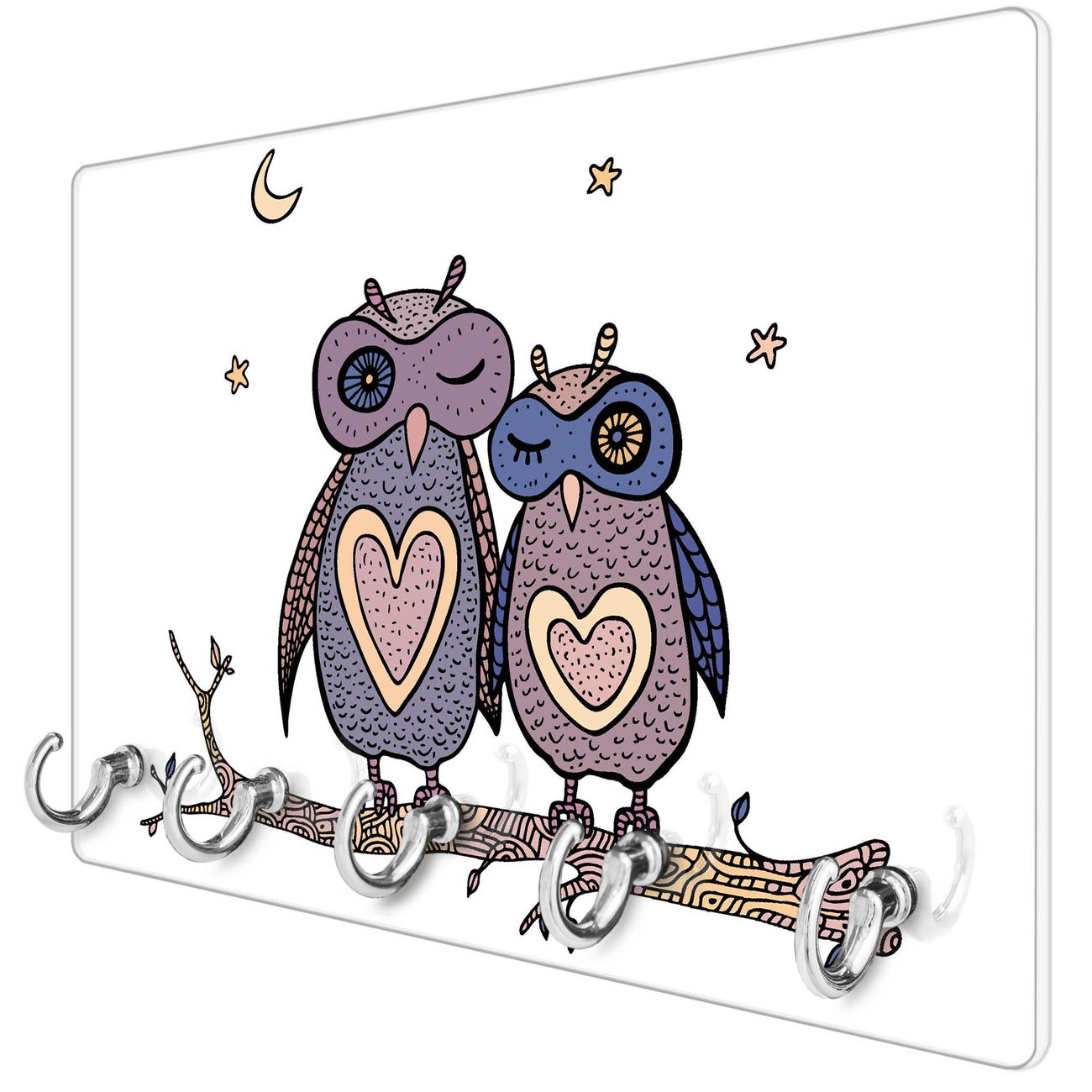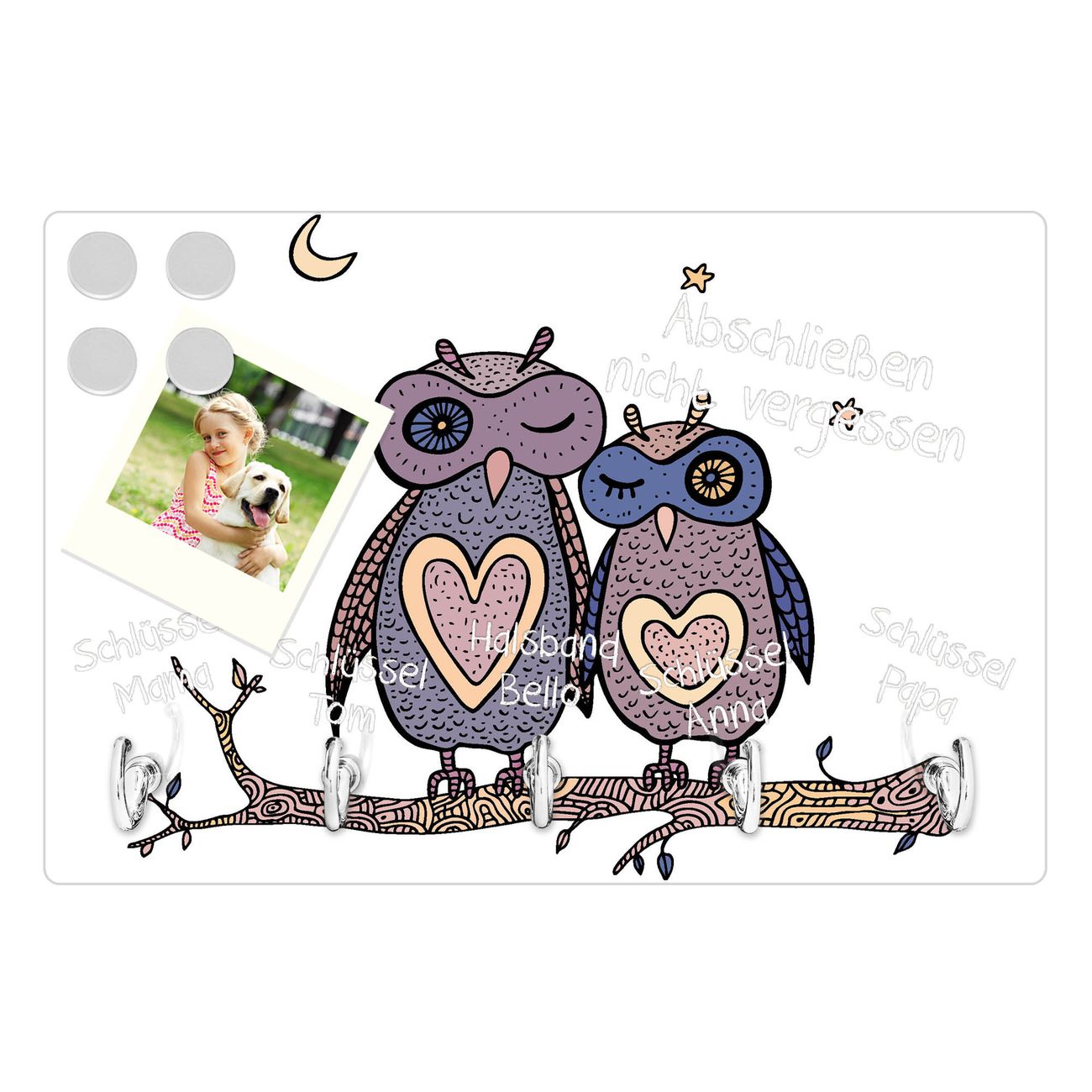Glas Schlüsselbrett mit 5 Haken Verliebte Eulen