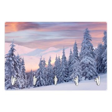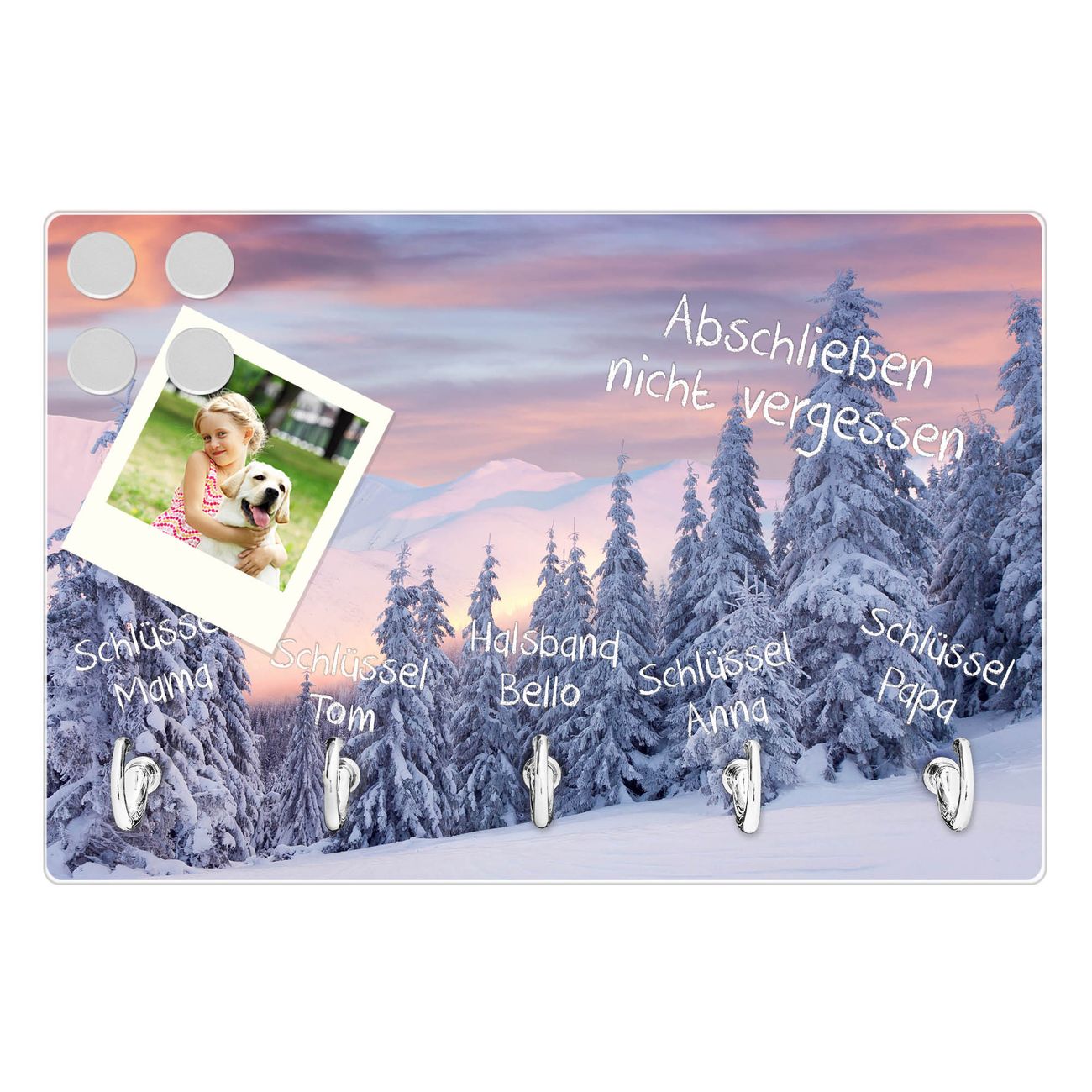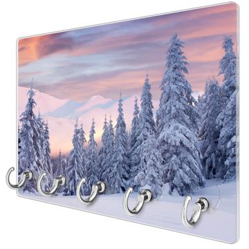 Glas Schlüsselbrett mit 5 Haken Verschneite Berge