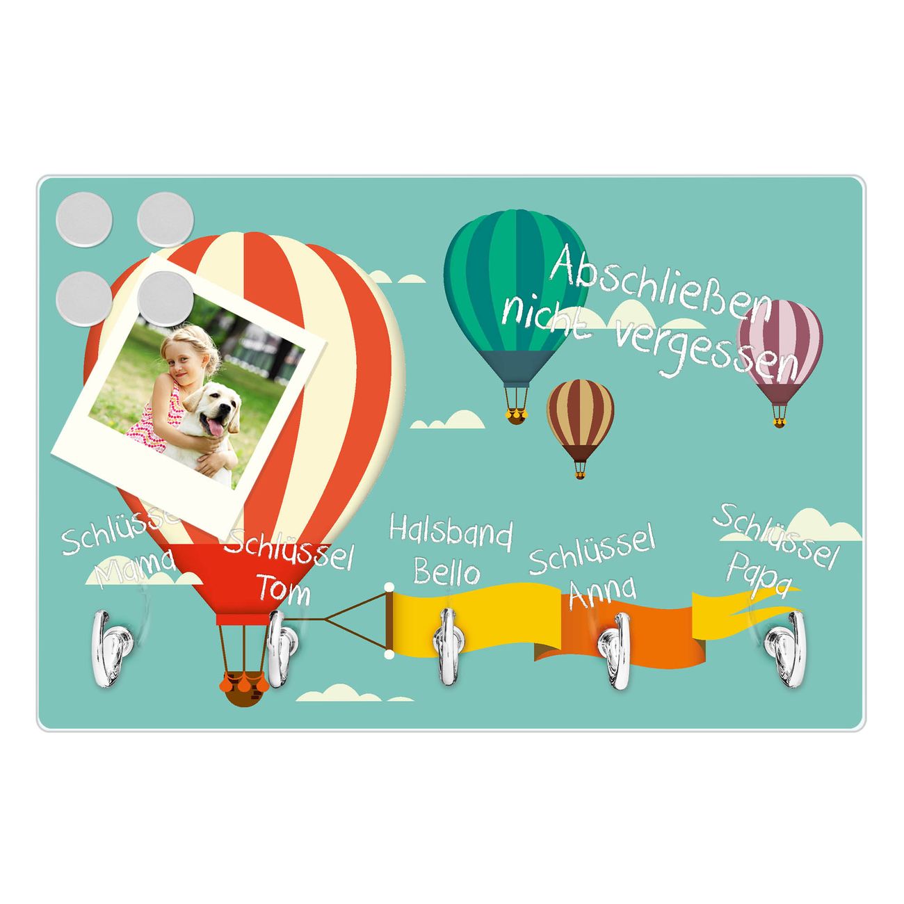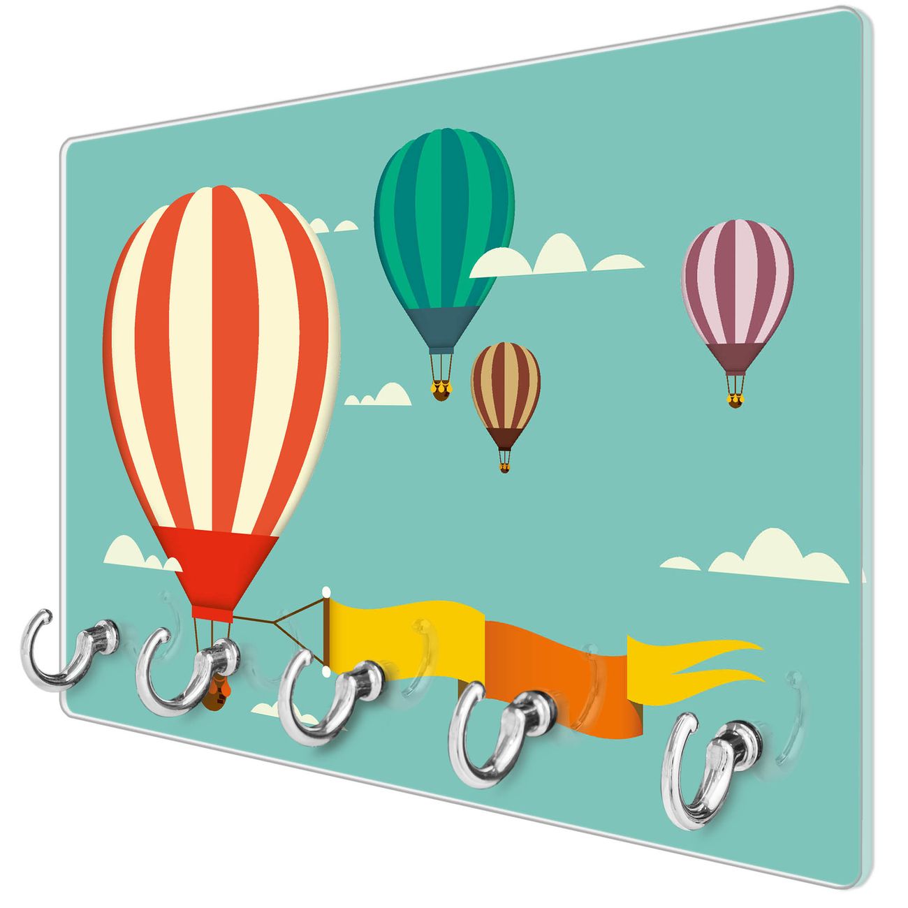 Glas Schlüsselbrett mit 5 Haken Vier Ballons