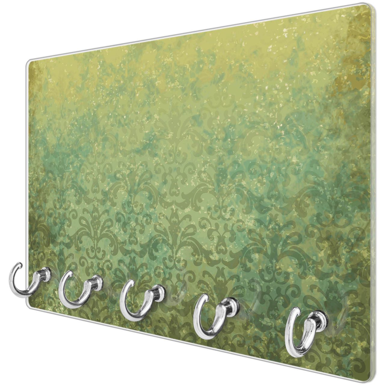 Glas Schlüsselbrett mit 5 Haken Vintage Messing
