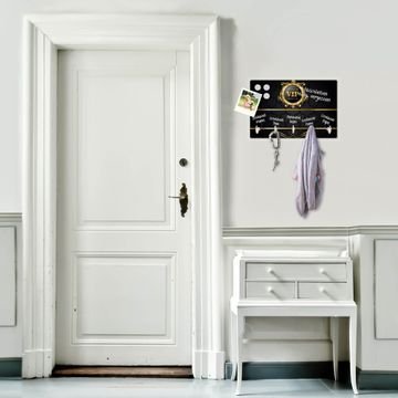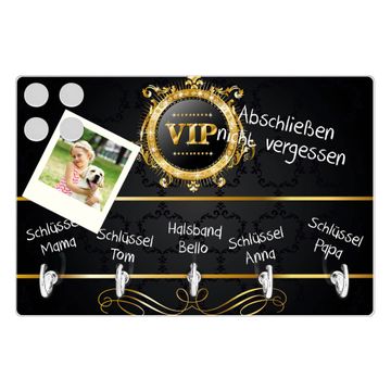 FUNKTION: Mit dem banjado Schlüsselbrett VIP hat Ihre Suche nach dem Schlüsselbund endlich ein Ende! Auf gesamt 5 Haken finden auch die größten Schlüssel ihren Platz. Durch den farbenfrohen Motivdruck ist das Schlüsselboard ein Blickfang in jeder Wohnung. DESIGN: Die Schlüsselleiste mit Motiv VIP hat ein sehr ansprechendes und ausgefallenes Design. Das Glasboard besteht aus einer gehärteten Glasscheibe mit dem Motiv Ihrer Wahl. Ihre neue Schlüsselaufbewahrung ist funktionell und ein optisches Highlight. DETAILS: Das Schlüsselbrett ist 30 x 20 x 4,5 CM (BxHxT). Das ganze Board besteht aus gehärtetem Sicherheitsglas, die Haken zur Selbstmontage präsentieren sich in Edelstahl-Optik. Für einen sicheren Halt erfolgt die Aufhängung an 2 vorgefertigten Haltern an der Rückseite. Das Montagematerial fügen wir bei. NUTZEN: Hier findet alles seinen Platz: Schlüsselbunde, Geschirrtücher, Hundeleinen oder Kinderjacken. Das Glas kann mit Kreidestiften bzw. Whiteboard-Marker beschrieben werden, mit extrastarken Neodym-Magneten können Sie auch Notizen anheften. BANJADO: Wir sind ein kleines Team aus dem Herzen von Sachsen und fertigen Ihre neue Schlüsselaufbewahrung von Hand an. Sie erhalten Handarbeit und keine preiswerte Importware. Wir hoffen, dass Ihnen unsere Idee zusagt, herzlichst das banjado Team.