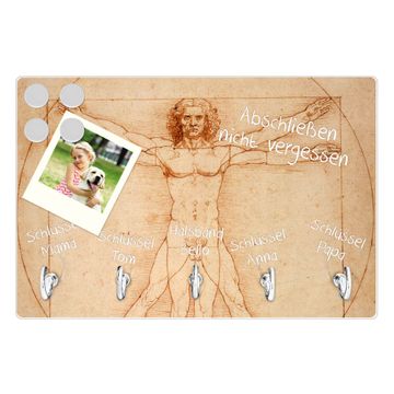 Glas Schlüsselbrett mit 5 Haken Vitruvianische Figur