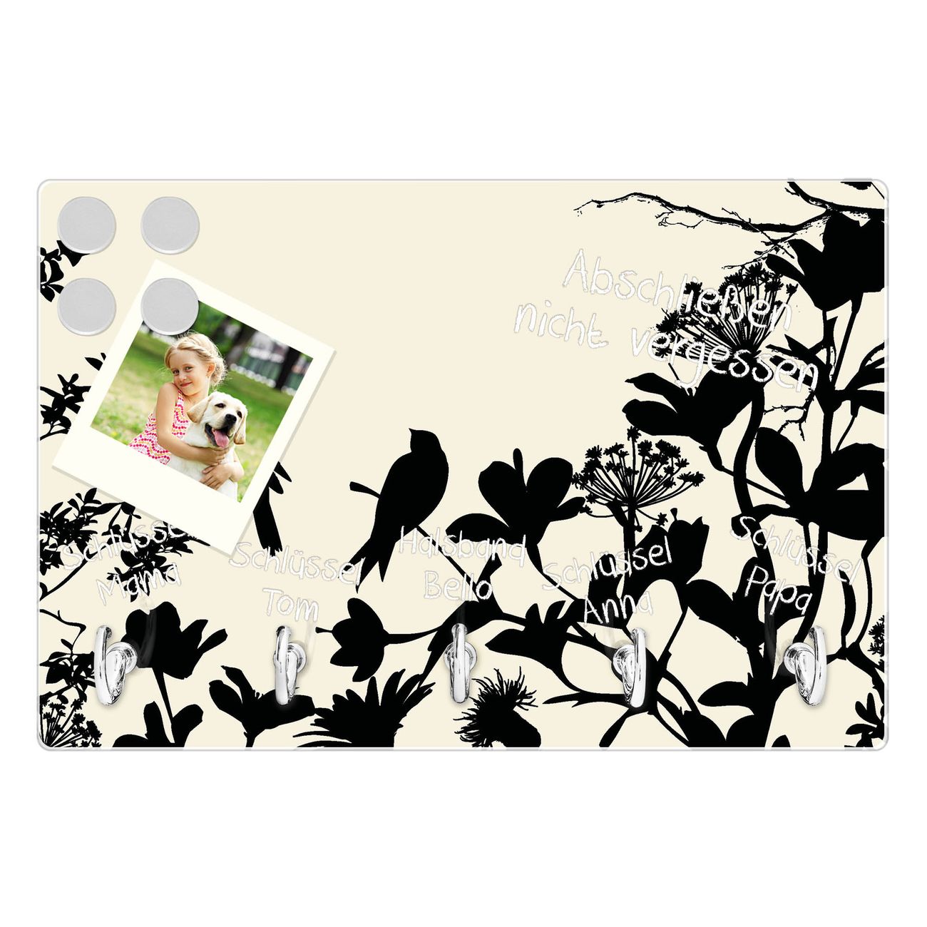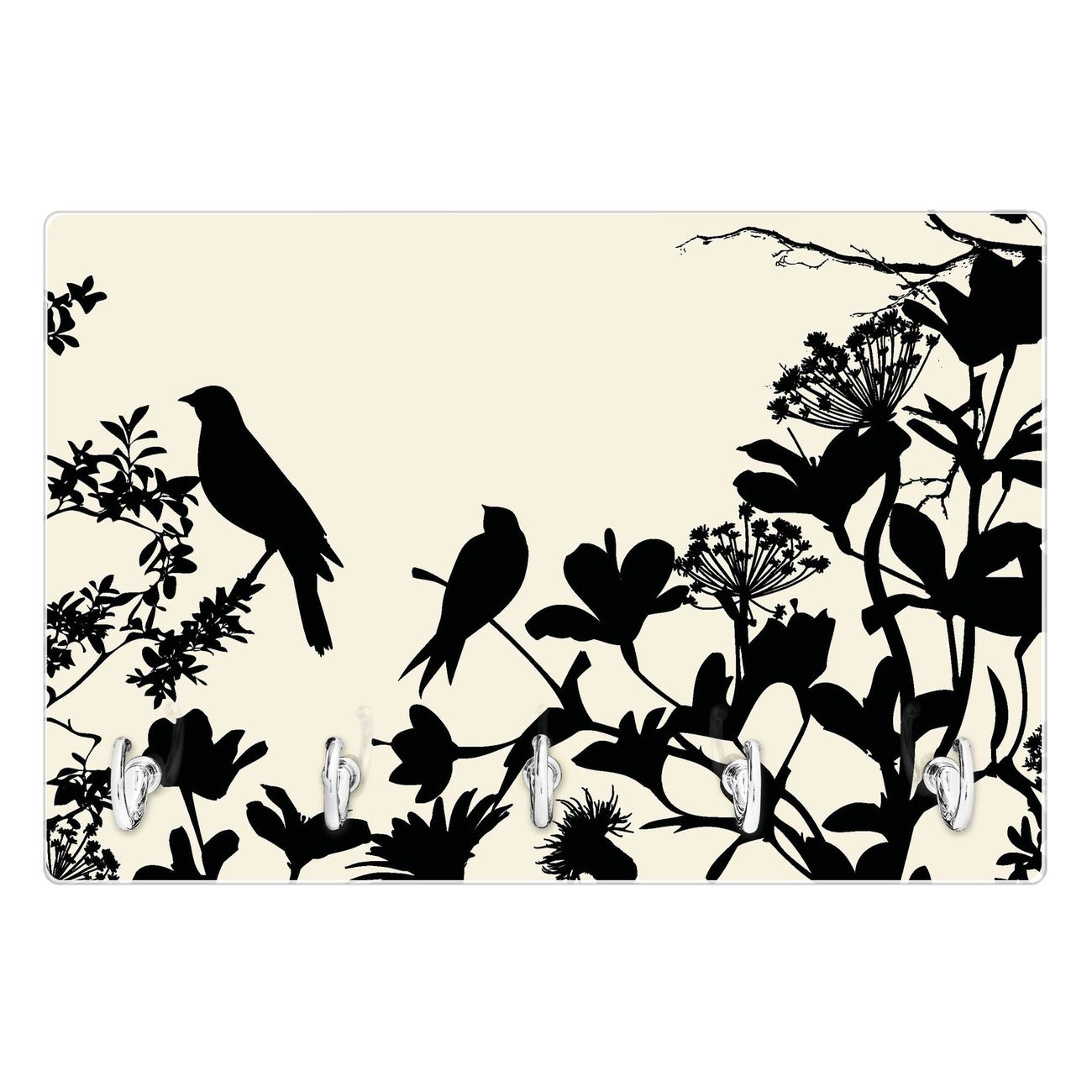 Glas Schlüsselbrett mit 5 Haken Vögel Schattenriß