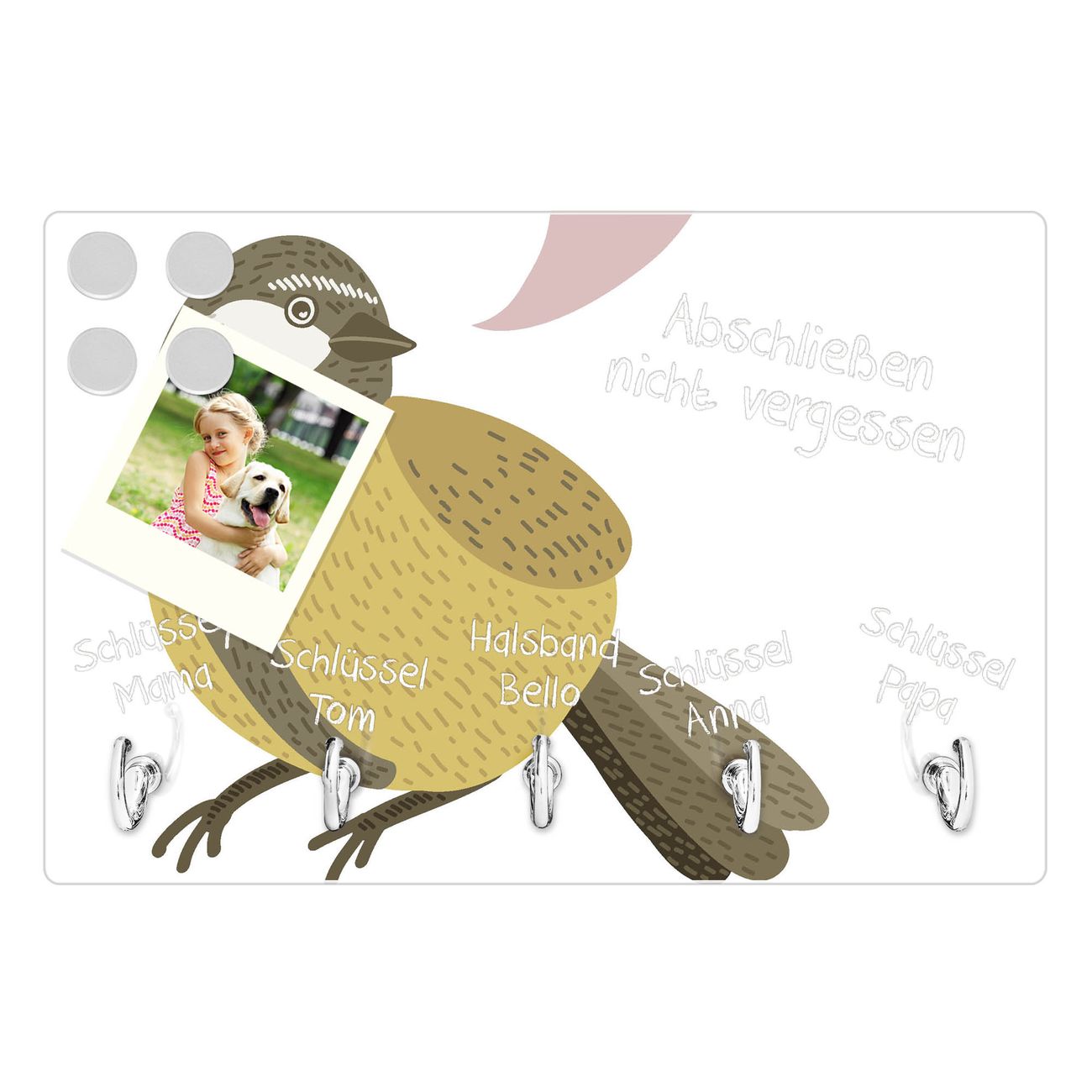 Glas Schlüsselbrett mit 5 Haken Vogel mit Sprechblase