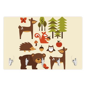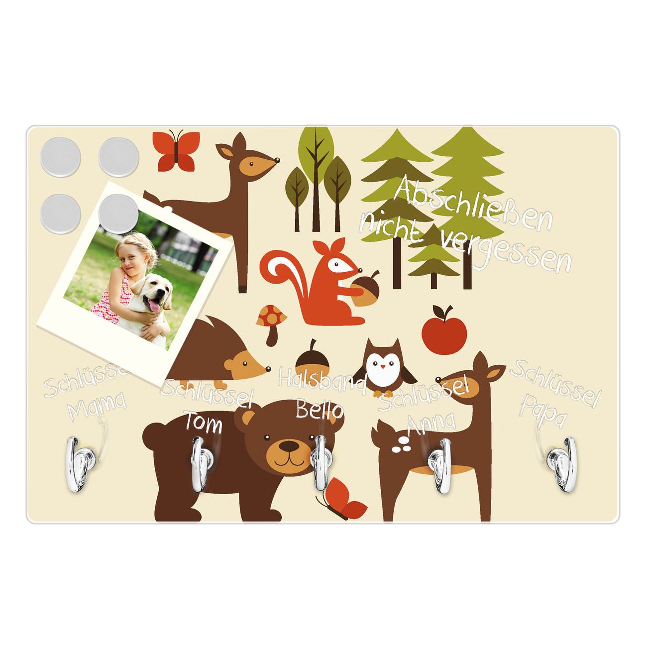 Glas Schlüsselbrett mit 5 Haken Waldfreunde