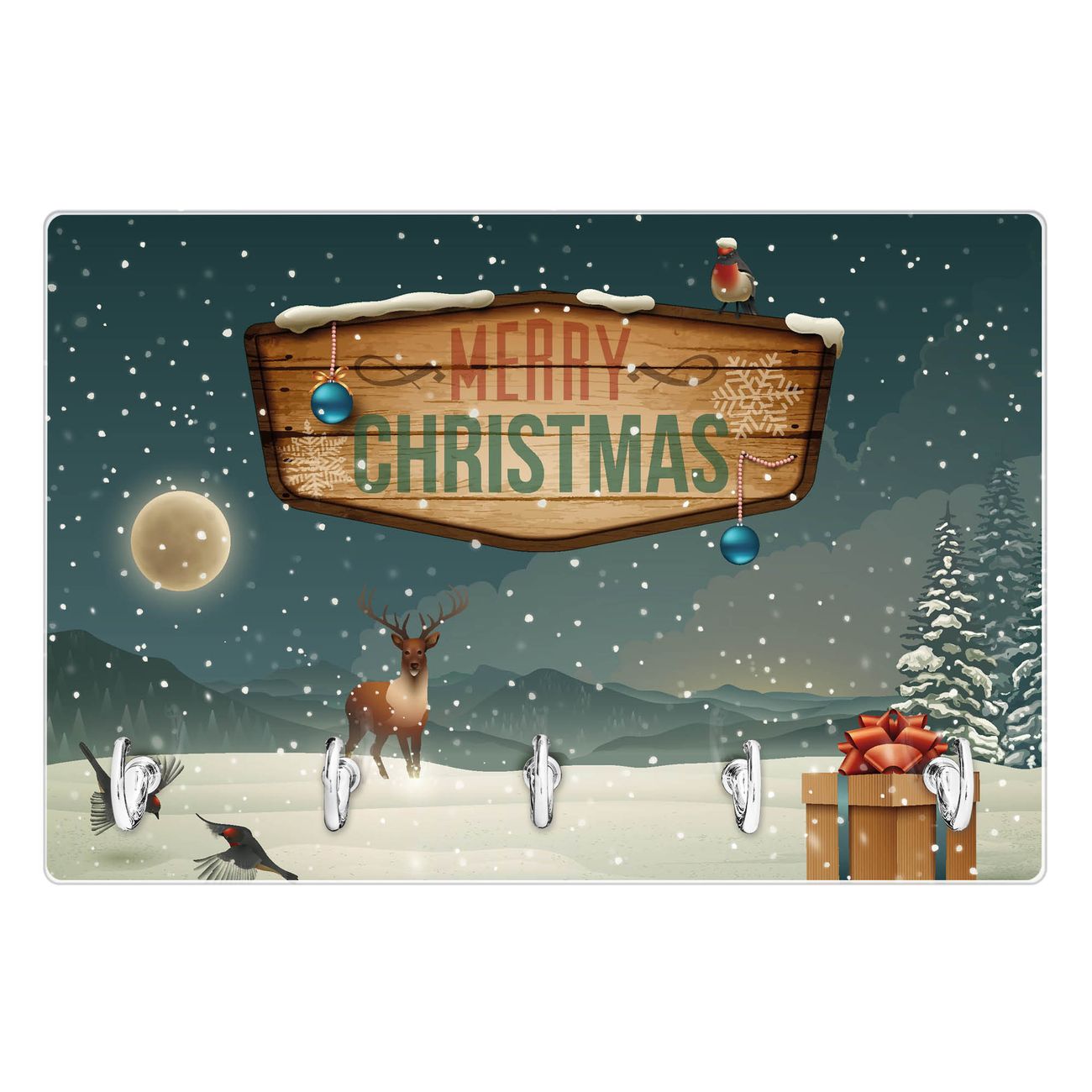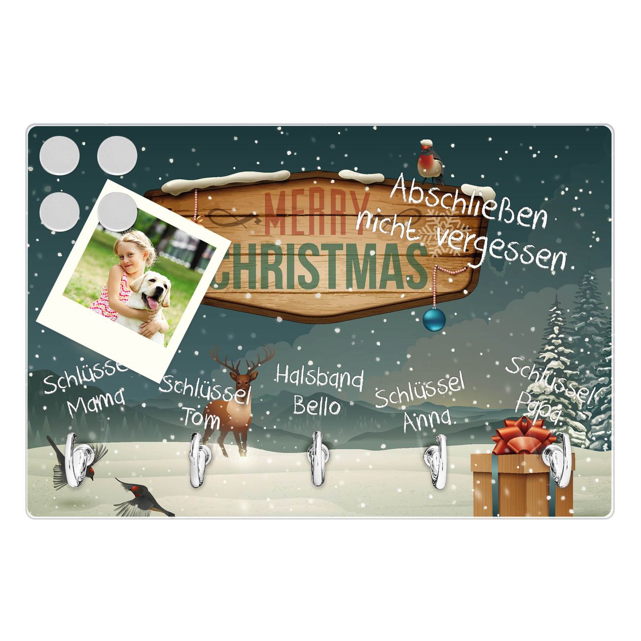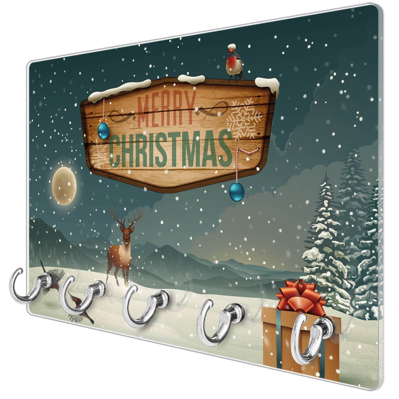 Glas Schlüsselbrett mit 5 Haken Weihnachtsland
