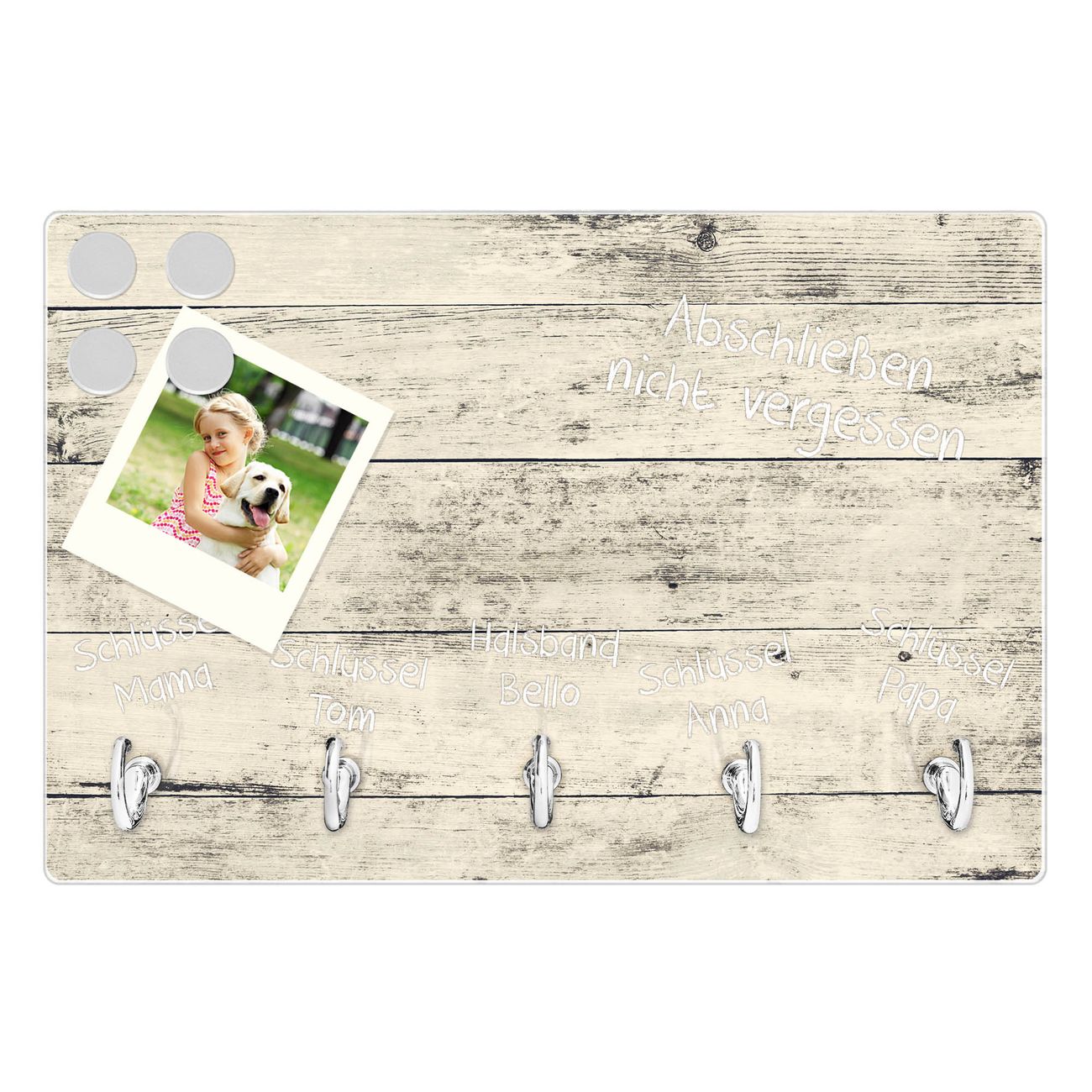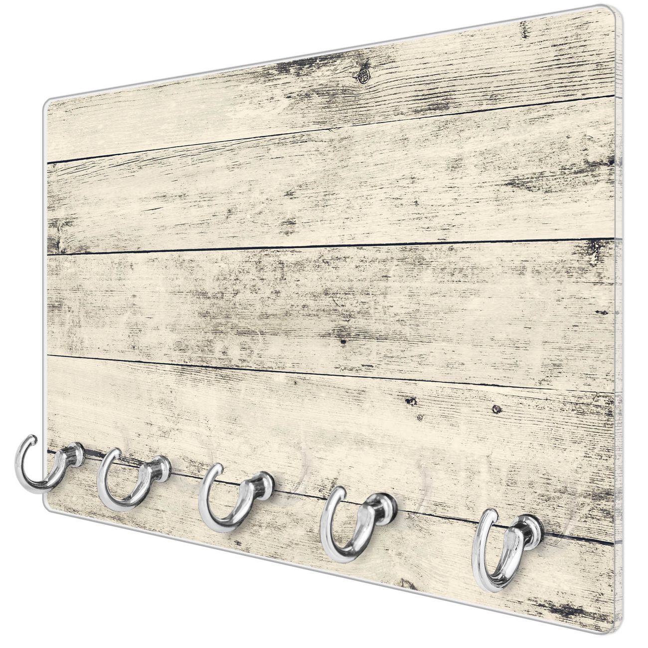 Glas Schlüsselbrett mit 5 Haken Weiße Planken H