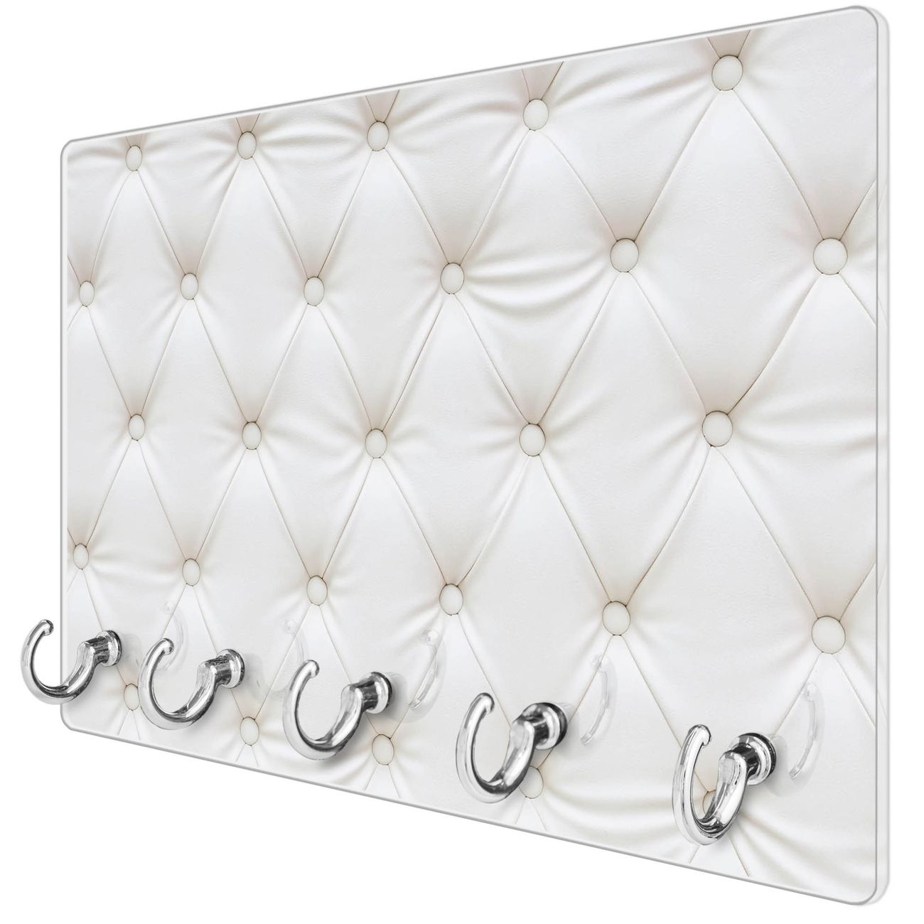 Glas Schlüsselbrett mit 5 Haken Weißes Polster