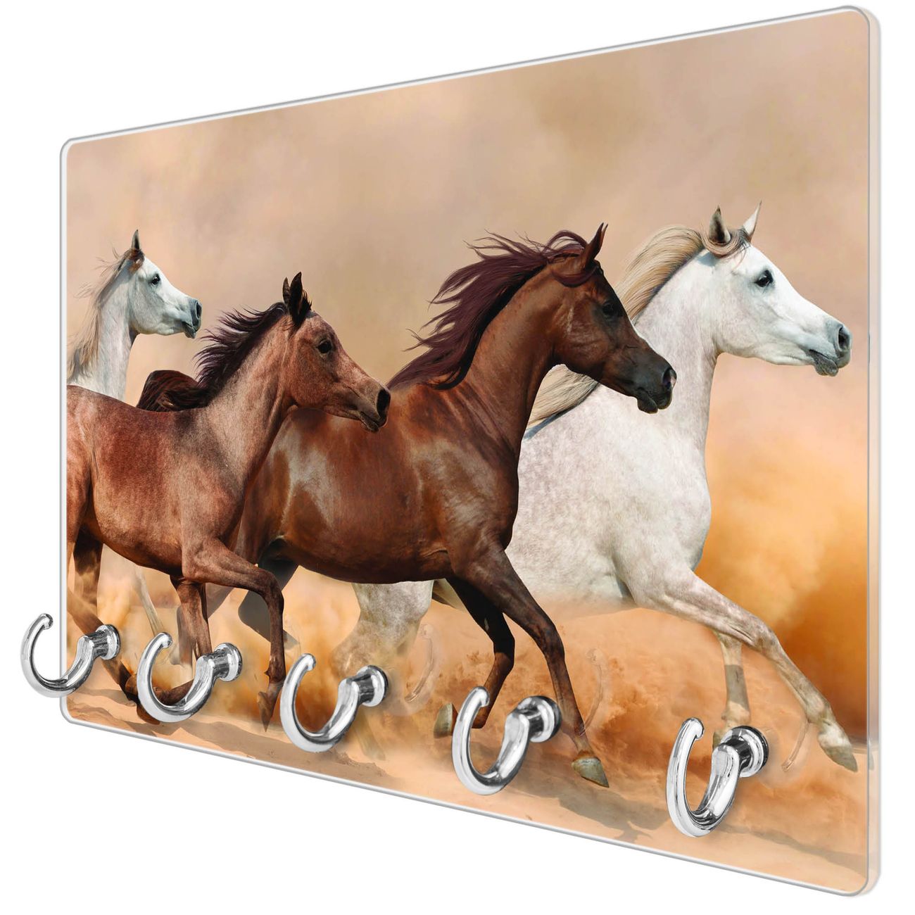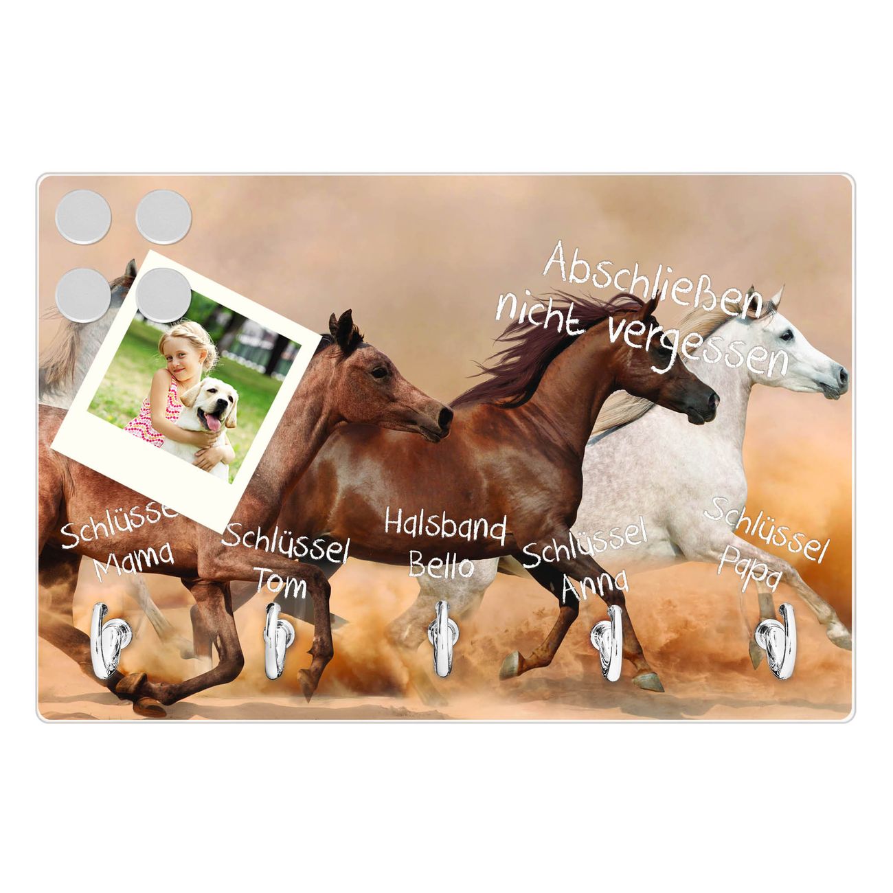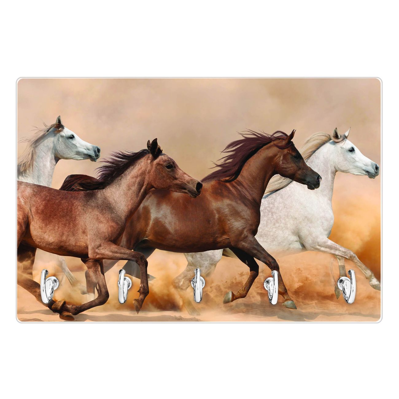Glas Schlüsselbrett mit 5 Haken Wilde Pferde