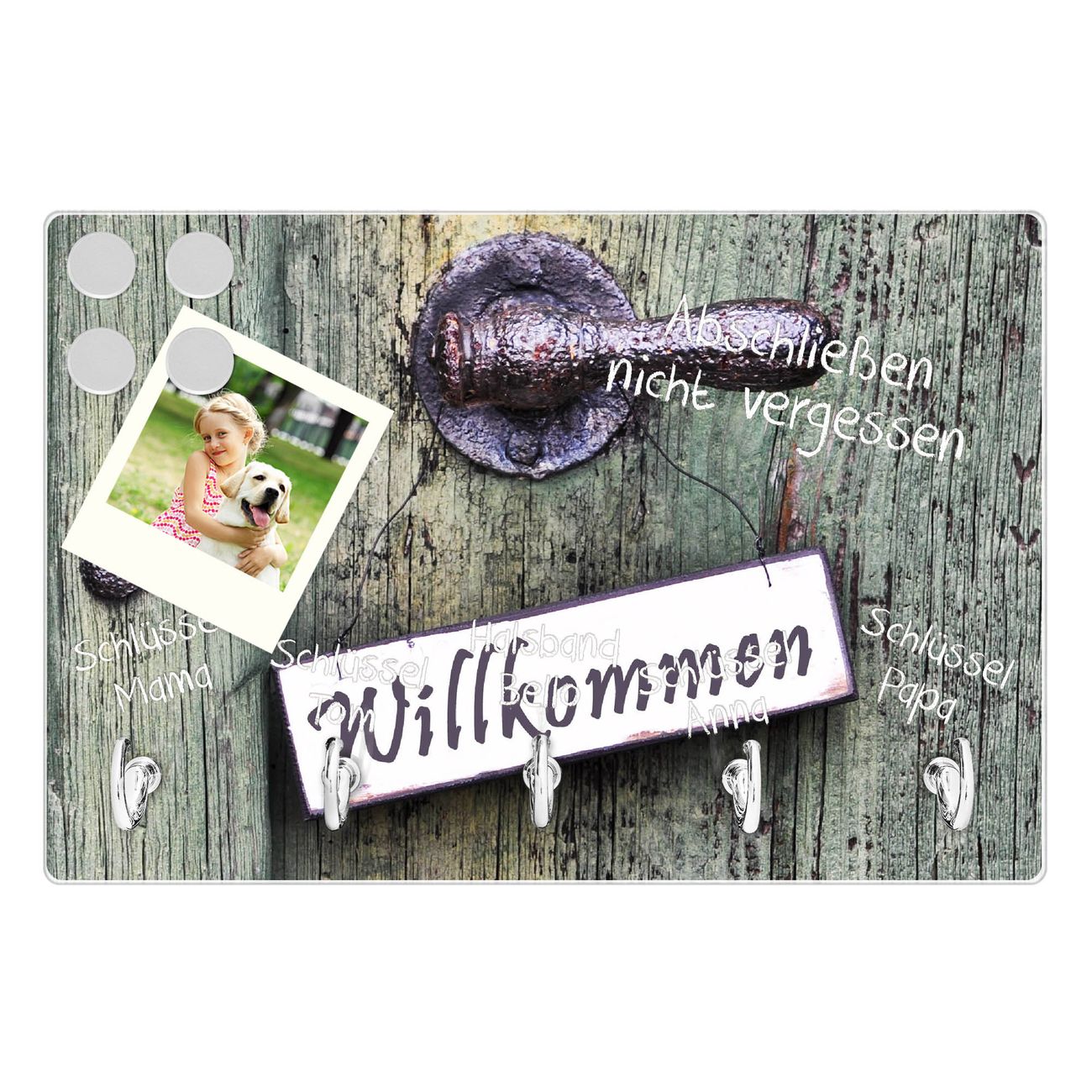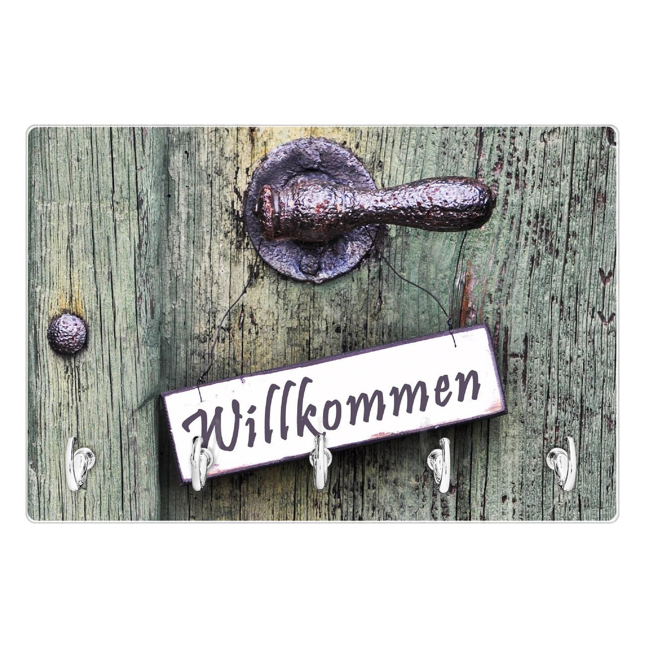 Glas Schlüsselbrett mit 5 Haken Willkommen