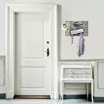 FUNKTION: Mit dem banjado Schlüsselbrett Willkommen hat Ihre Suche nach dem Schlüsselbund endlich ein Ende! Auf gesamt 5 Haken finden auch die größten Schlüssel ihren Platz. Durch den farbenfrohen Motivdruck ist das Schlüsselboard ein Blickfang in jeder Wohnung. DESIGN: Die Schlüsselleiste mit Motiv Willkommen hat ein sehr ansprechendes und ausgefallenes Design. Das Glasboard besteht aus einer gehärteten Glasscheibe mit dem Motiv Ihrer Wahl. Ihre neue Schlüsselaufbewahrung ist funktionell und ein optisches Highlight. DETAILS: Das Schlüsselbrett ist 30 x 20 x 4,5 CM (BxHxT). Das ganze Board besteht aus gehärtetem Sicherheitsglas, die Haken zur Selbstmontage präsentieren sich in Edelstahl-Optik. Für einen sicheren Halt erfolgt die Aufhängung an 2 vorgefertigten Haltern an der Rückseite. Das Montagematerial fügen wir bei. NUTZEN: Hier findet alles seinen Platz: Schlüsselbunde, Geschirrtücher, Hundeleinen oder Kinderjacken. Das Glas kann mit Kreidestiften bzw. Whiteboard-Marker beschrieben werden, mit extrastarken Neodym-Magneten können Sie auch Notizen anheften. BANJADO: Wir sind ein kleines Team aus dem Herzen von Sachsen und fertigen Ihre neue Schlüsselaufbewahrung von Hand an. Sie erhalten Handarbeit und keine preiswerte Importware. Wir hoffen, dass Ihnen unsere Idee zusagt, herzlichst das banjado Team.