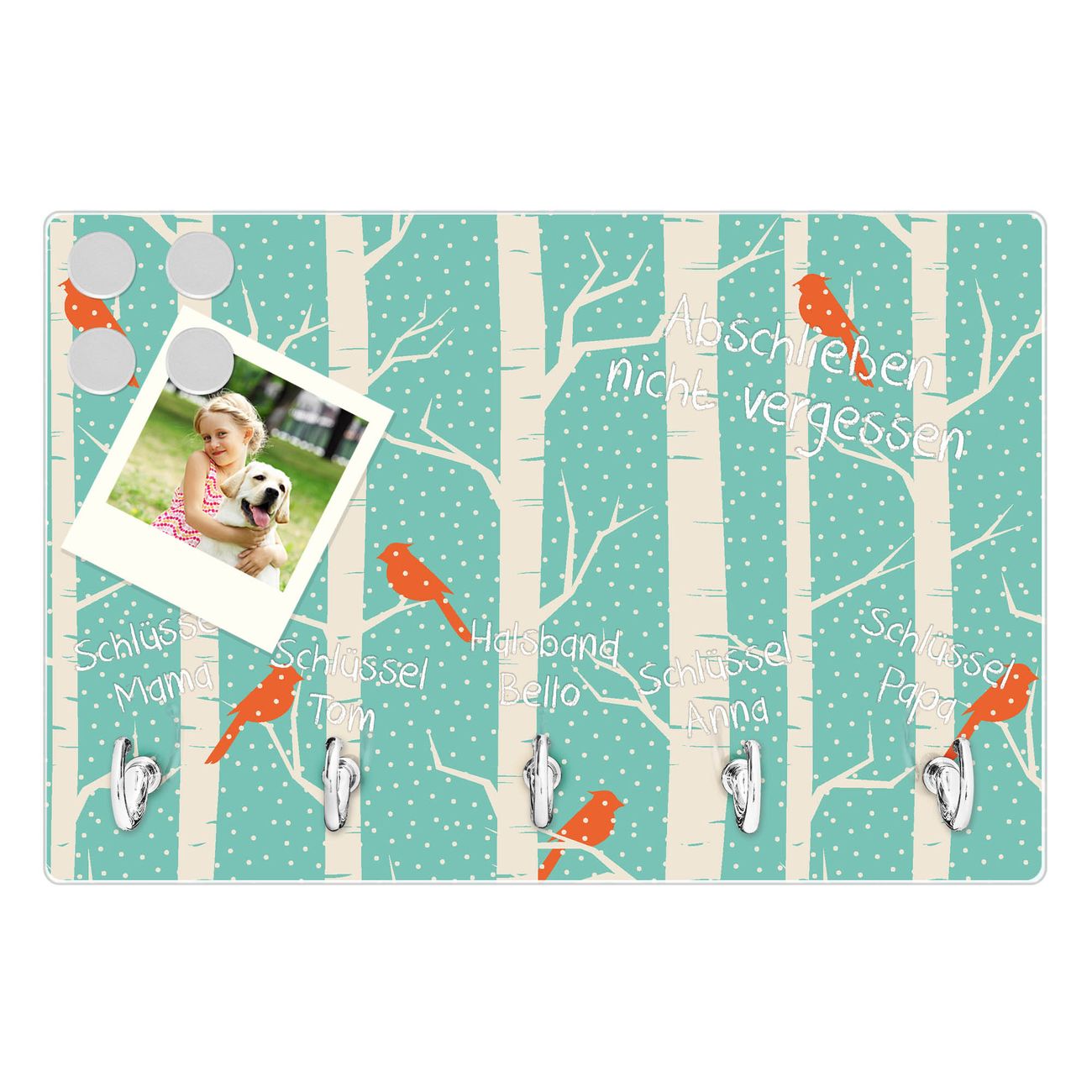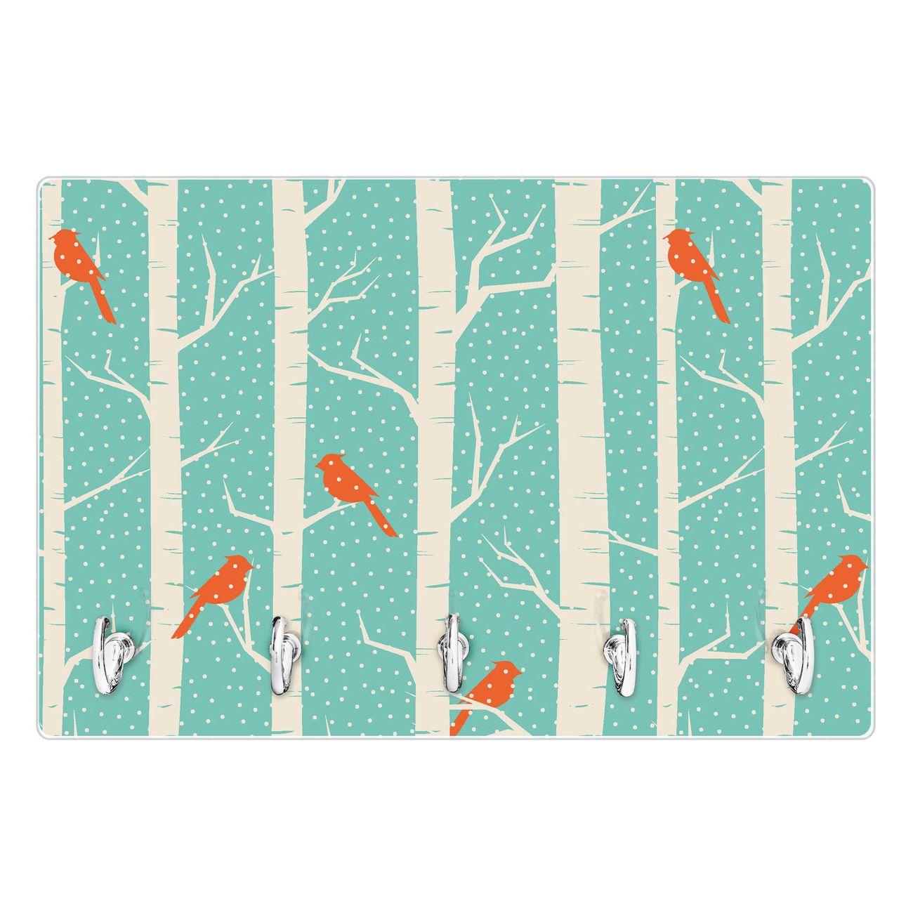 Glas Schlüsselbrett mit 5 Haken Wintervögel