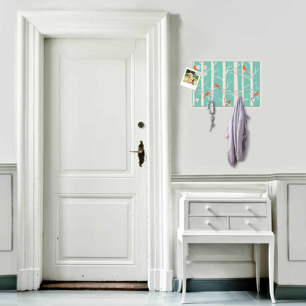 FUNKTION: Mit dem banjado Schlüsselbrett Wintervögel hat Ihre Suche nach dem Schlüsselbund endlich ein Ende! Auf gesamt 5 Haken finden auch die größten Schlüssel ihren Platz. Durch den farbenfrohen Motivdruck ist das Schlüsselboard ein Blickfang in jeder Wohnung. DESIGN: Die Schlüsselleiste mit Motiv Wintervögel hat ein sehr ansprechendes und ausgefallenes Design. Das Glasboard besteht aus einer gehärteten Glasscheibe mit dem Motiv Ihrer Wahl. Ihre neue Schlüsselaufbewahrung ist funktionell und ein optisches Highlight. DETAILS: Das Schlüsselbrett ist 30 x 20 x 4,5 CM (BxHxT). Das ganze Board besteht aus gehärtetem Sicherheitsglas, die Haken zur Selbstmontage präsentieren sich in Edelstahl-Optik. Für einen sicheren Halt erfolgt die Aufhängung an 2 vorgefertigten Haltern an der Rückseite. Das Montagematerial fügen wir bei. NUTZEN: Hier findet alles seinen Platz: Schlüsselbunde, Geschirrtücher, Hundeleinen oder Kinderjacken. Das Glas kann mit Kreidestiften bzw. Whiteboard-Marker beschrieben werden, mit extrastarken Neodym-Magneten können Sie auch Notizen anheften. BANJADO: Wir sind ein kleines Team aus dem Herzen von Sachsen und fertigen Ihre neue Schlüsselaufbewahrung von Hand an. Sie erhalten Handarbeit und keine preiswerte Importware. Wir hoffen, dass Ihnen unsere Idee zusagt, herzlichst das banjado Team.