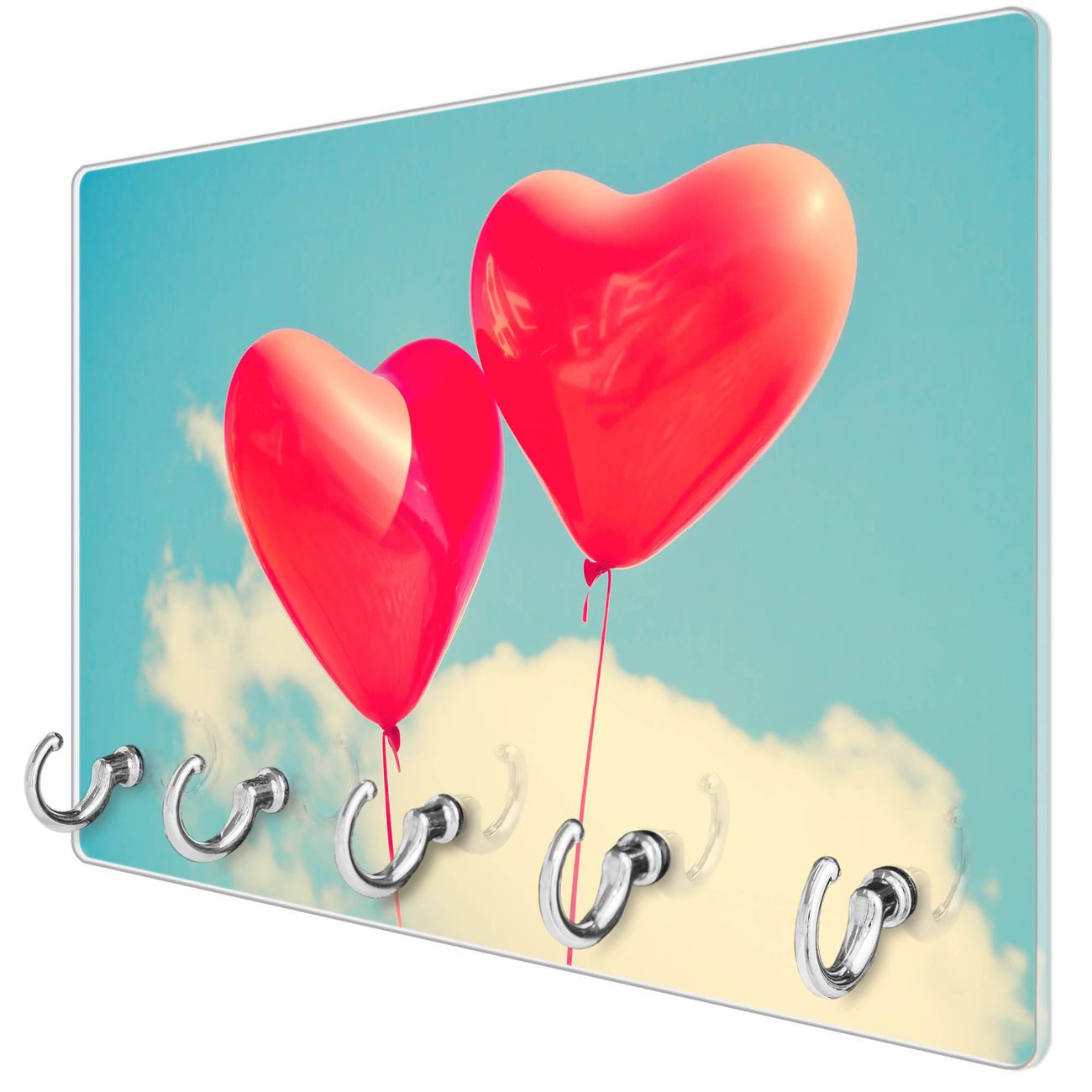 Glas Schlüsselbrett mit 5 Haken Wolke Sieben