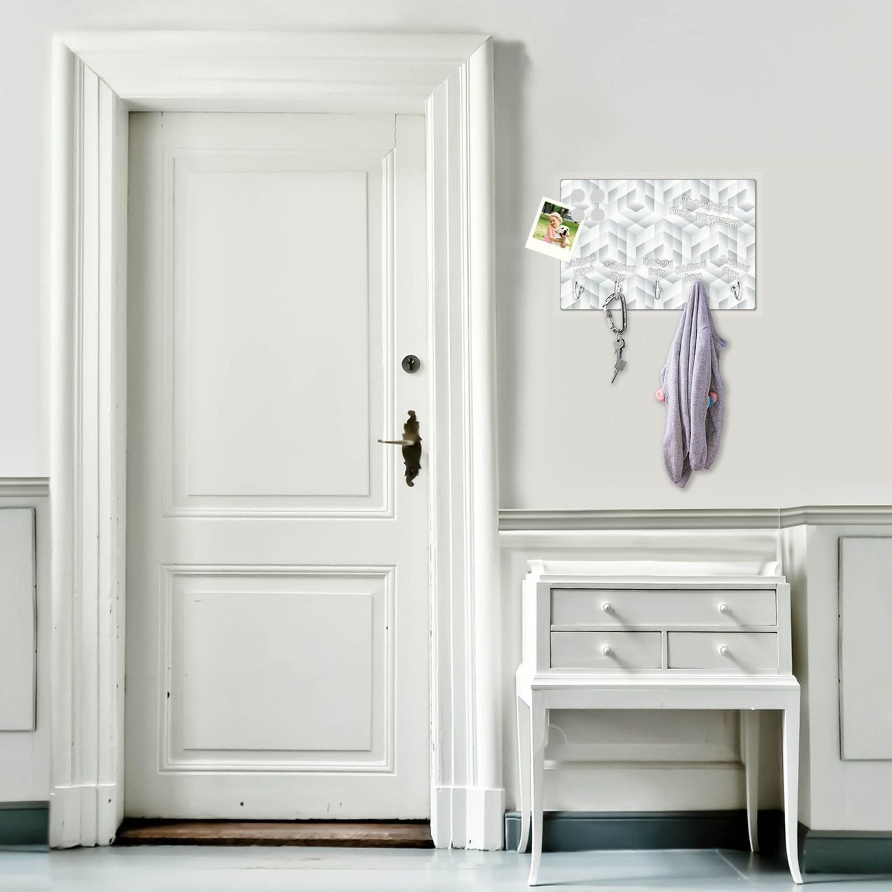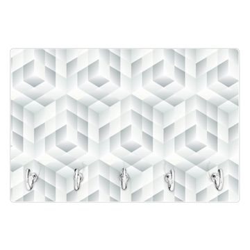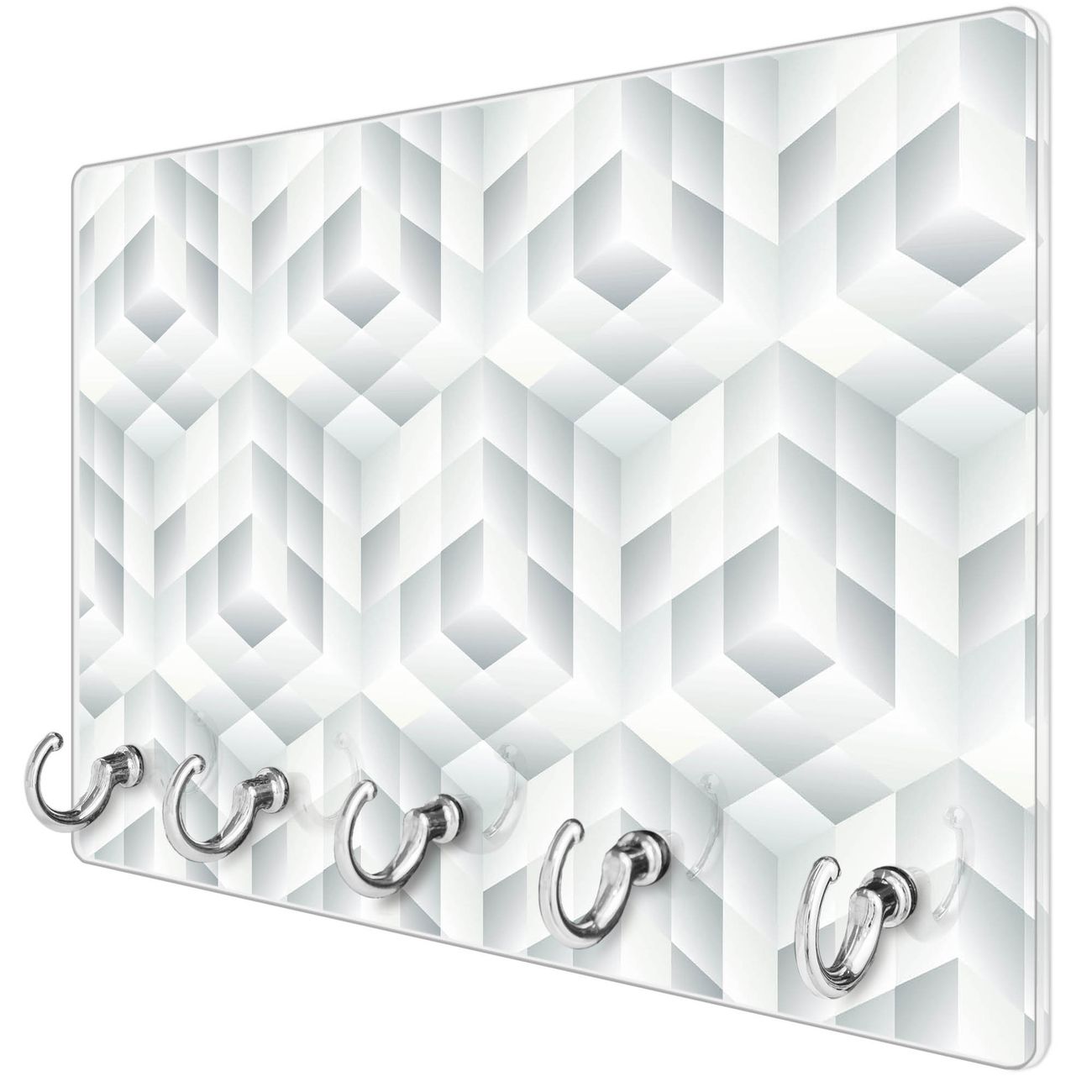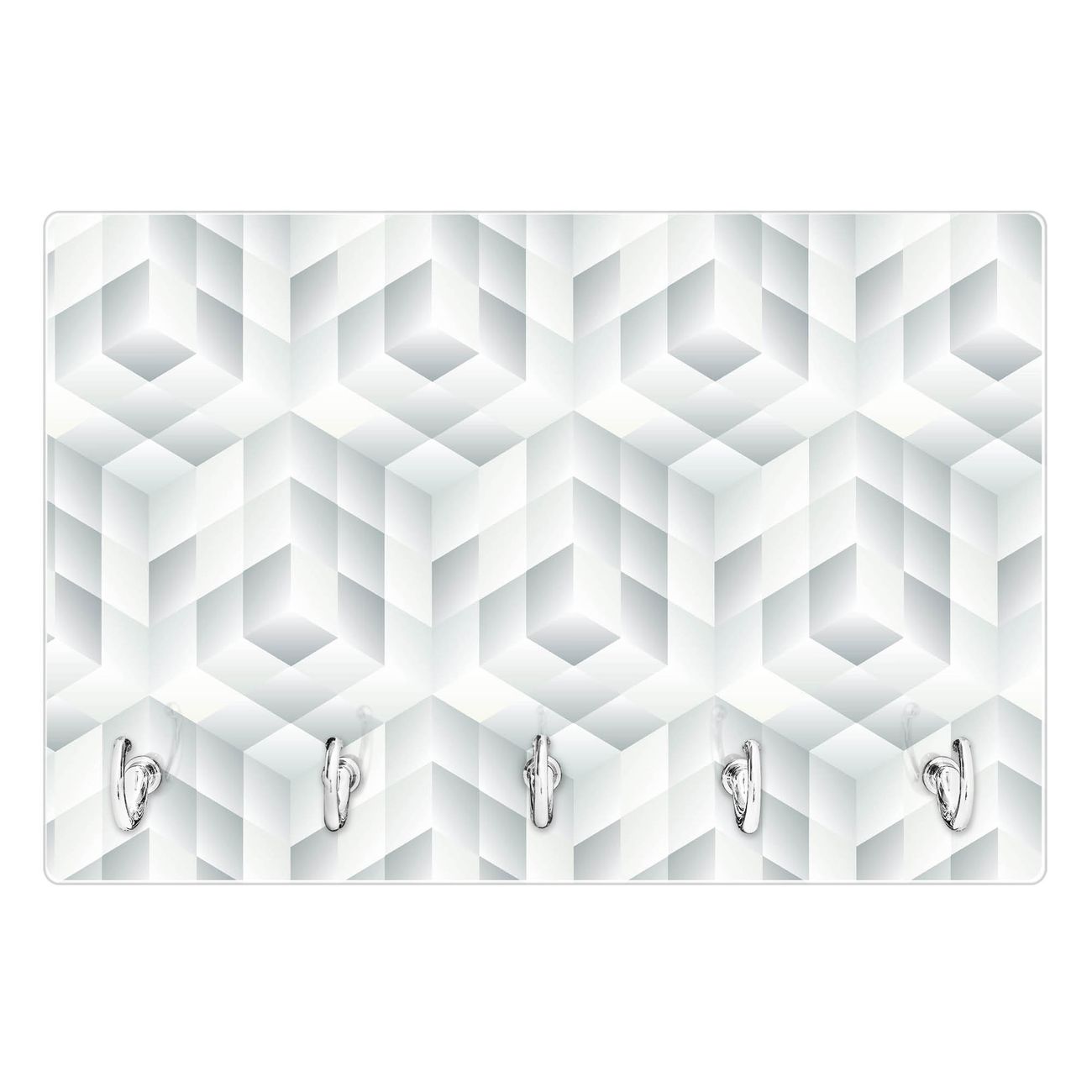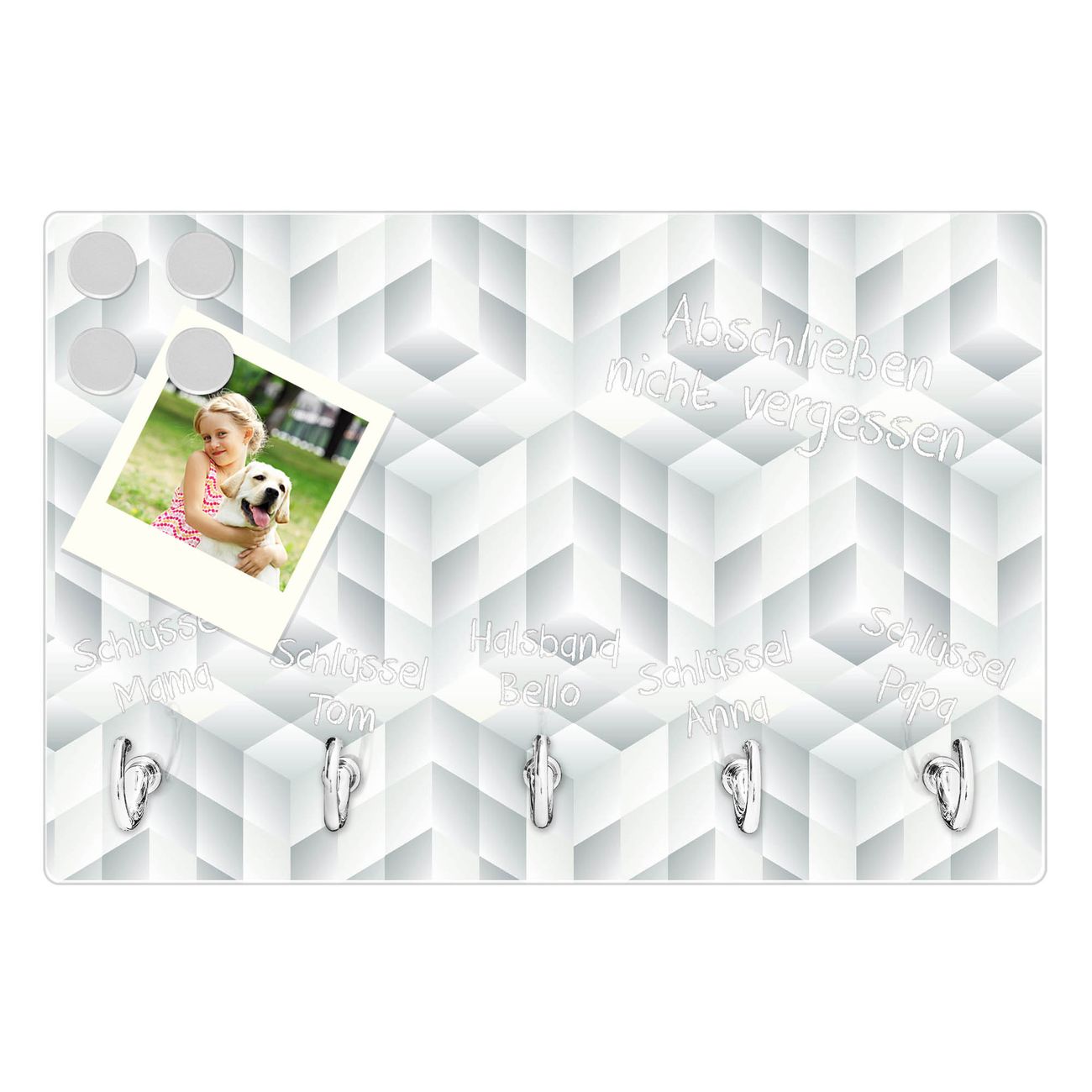 Glas Schlüsselbrett mit 5 Haken Würfel Grau
