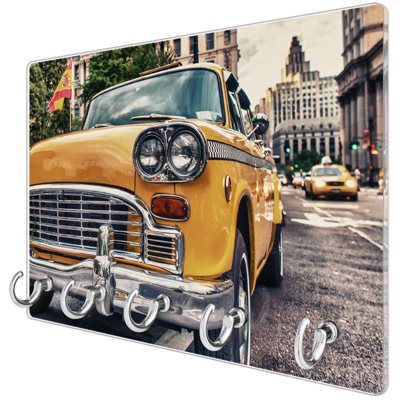 Glas Schlüsselbrett mit 5 Haken Yellow Cab