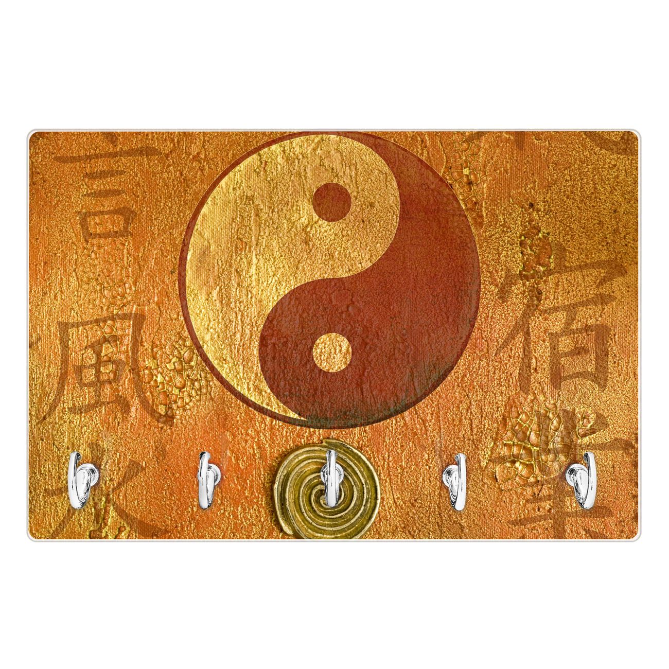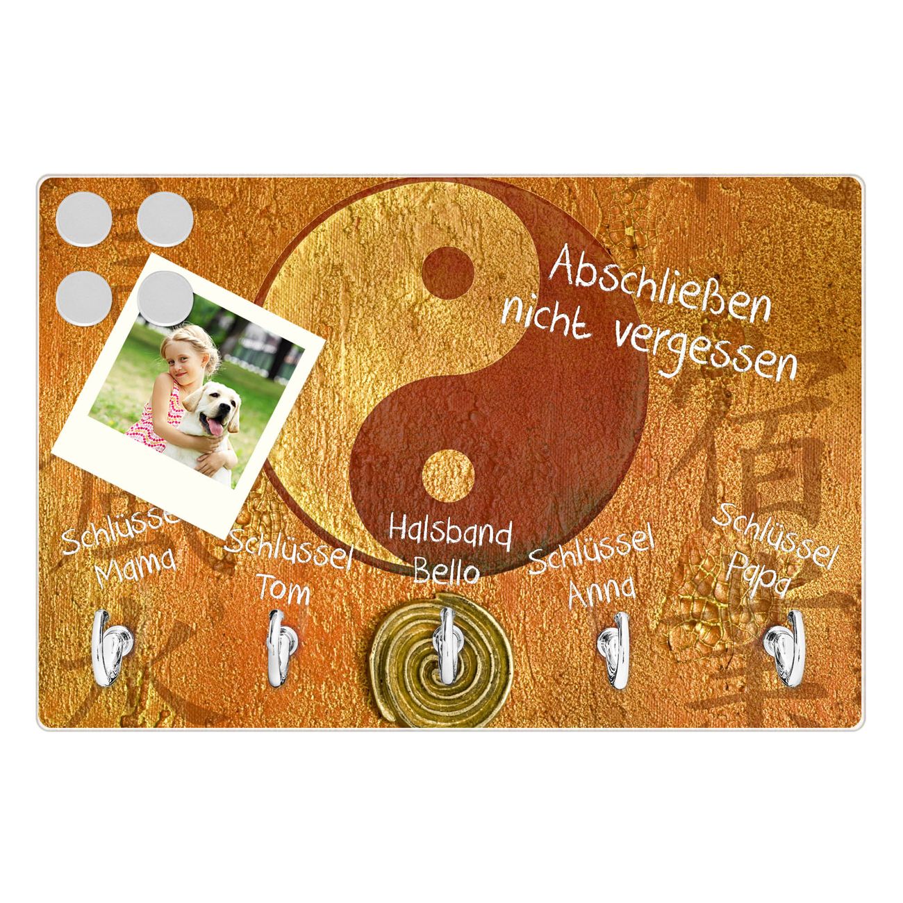 Glas Schlüsselbrett mit 5 Haken Yin Yang