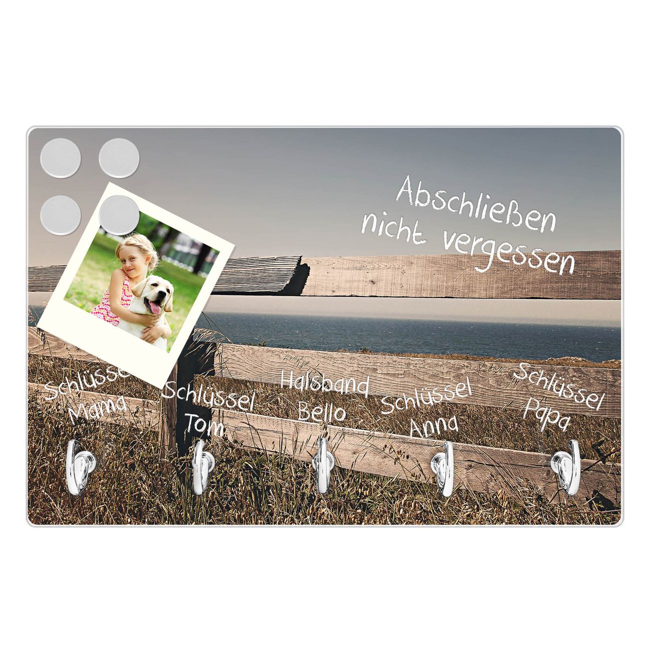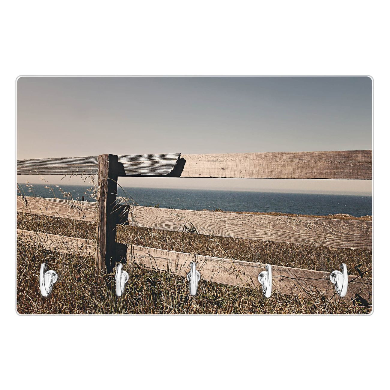 Glas Schlüsselbrett mit 5 Haken Zaun am Meer